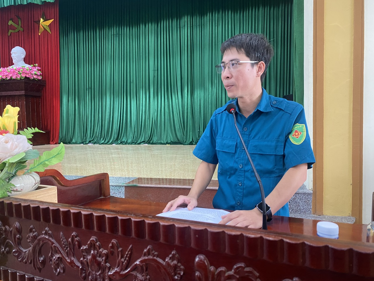 Đồng chí Nguyễn Xuân Huỳnh – UV BTV - Chỉ huy trưởng Ban Chỉ huy Quân sự xã triển khai các văn bản lãnh đạo, chỉ đạo