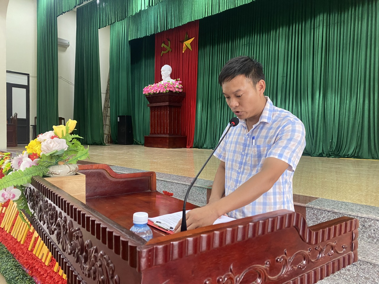 Đồng chí Trần Tùng - Phó bí thư Đảng ủy - Chủ tịch UBND xã phát biểu chỉ đạo tại hội nghị