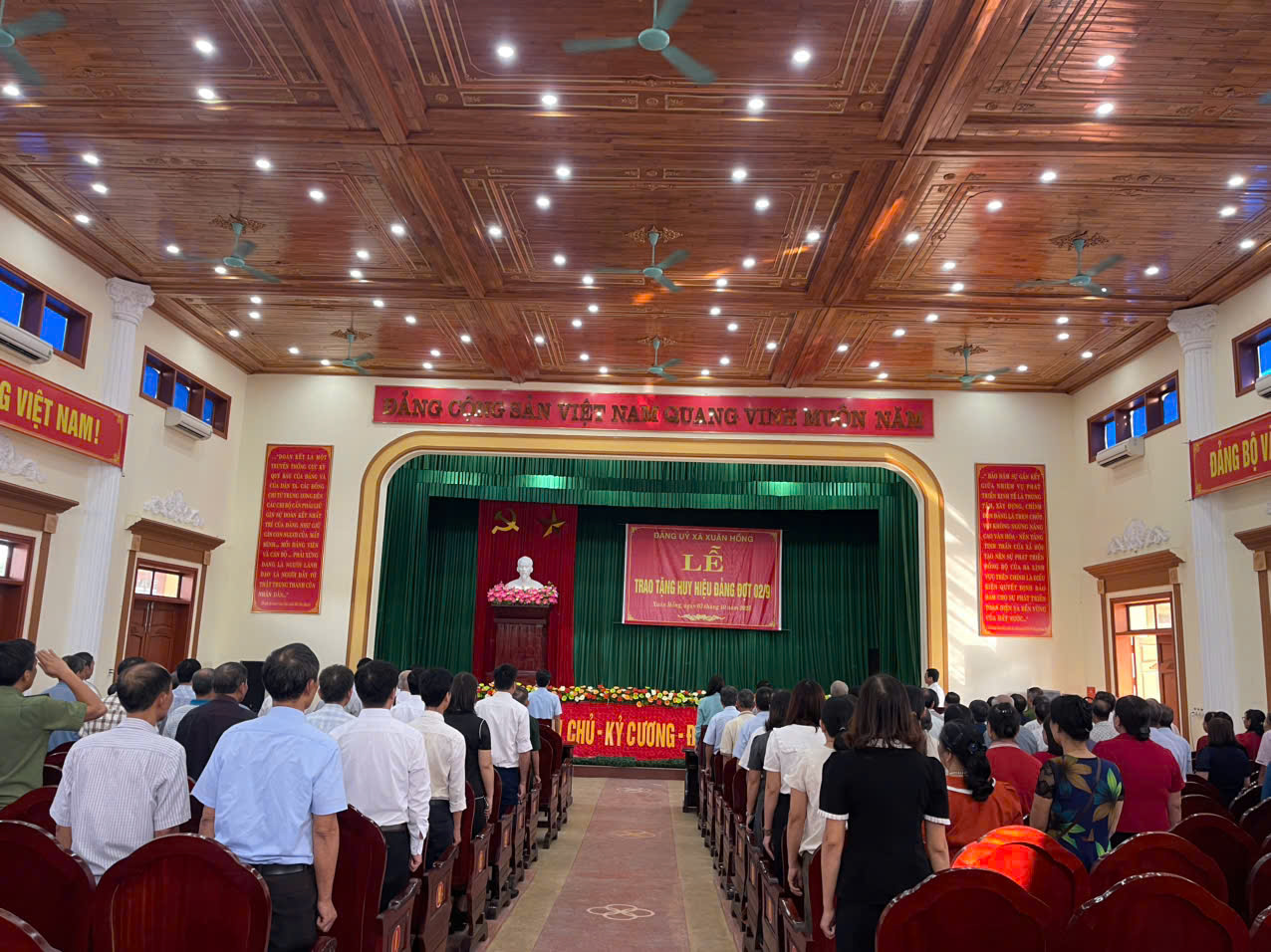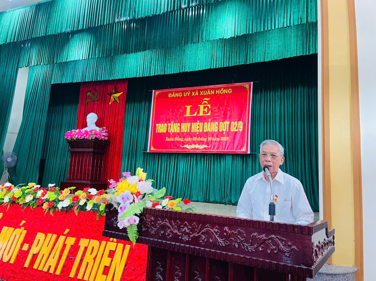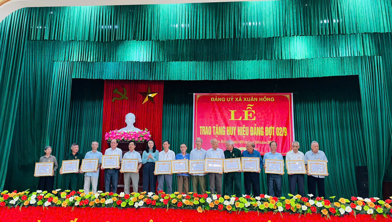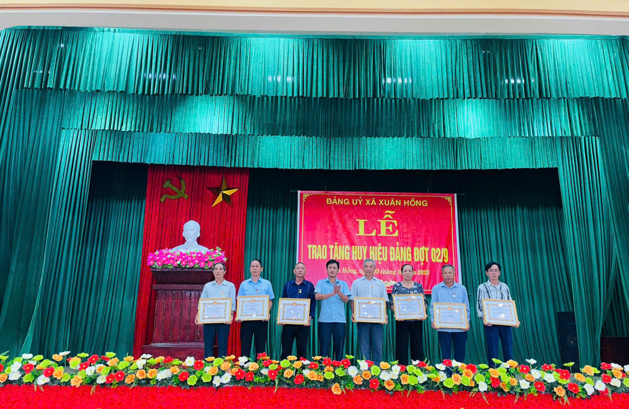 Sáng 03/10/2025, tại nhà Văn hóa xã, Đảng bộ xã Xuân Hồng tổ chức Lễ trao tặng Huy hiệu Đảng cho Đảng viên đợt 2/9/2025.