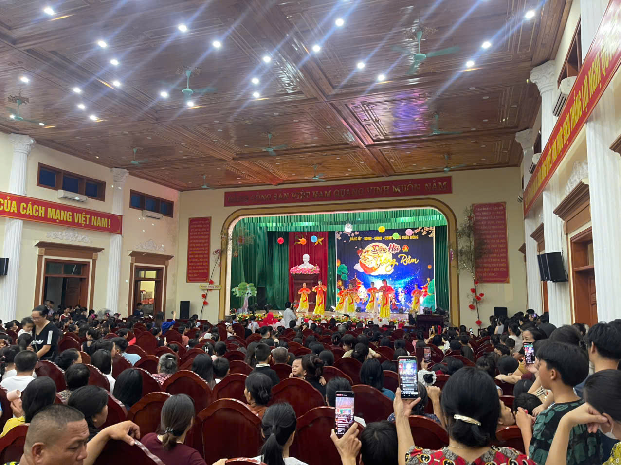 Các thôn, xóm đều đồng loạt tổ chức phá cỗ, trao quà cho thiếu nhi, mang đến cho các em những khoảnh khắc tuổi thơ hồn nhiên, trong sáng và đáng nhớ. Tình làng nghĩa xóm thêm gắn bó, mọi người cùng nhau sẻ chia niềm vui, thể hiện tinh thần đoàn kết cộng đồng. Nổi bật trong chuỗi hoạt động là các Đêm giao lưu văn nghệ được tổ chức tại nhà văn hoá xóm. Với sự tham gia nhiệt tình của các em thiếu nhi, đoàn viên thanh niên và đông đảo bà con nhân dân, các tiết mục văn nghệ đã mang đến những màn trình diễn đặc sắc, tạo nên không khí sôi động và đầy ắp tiếng cười.