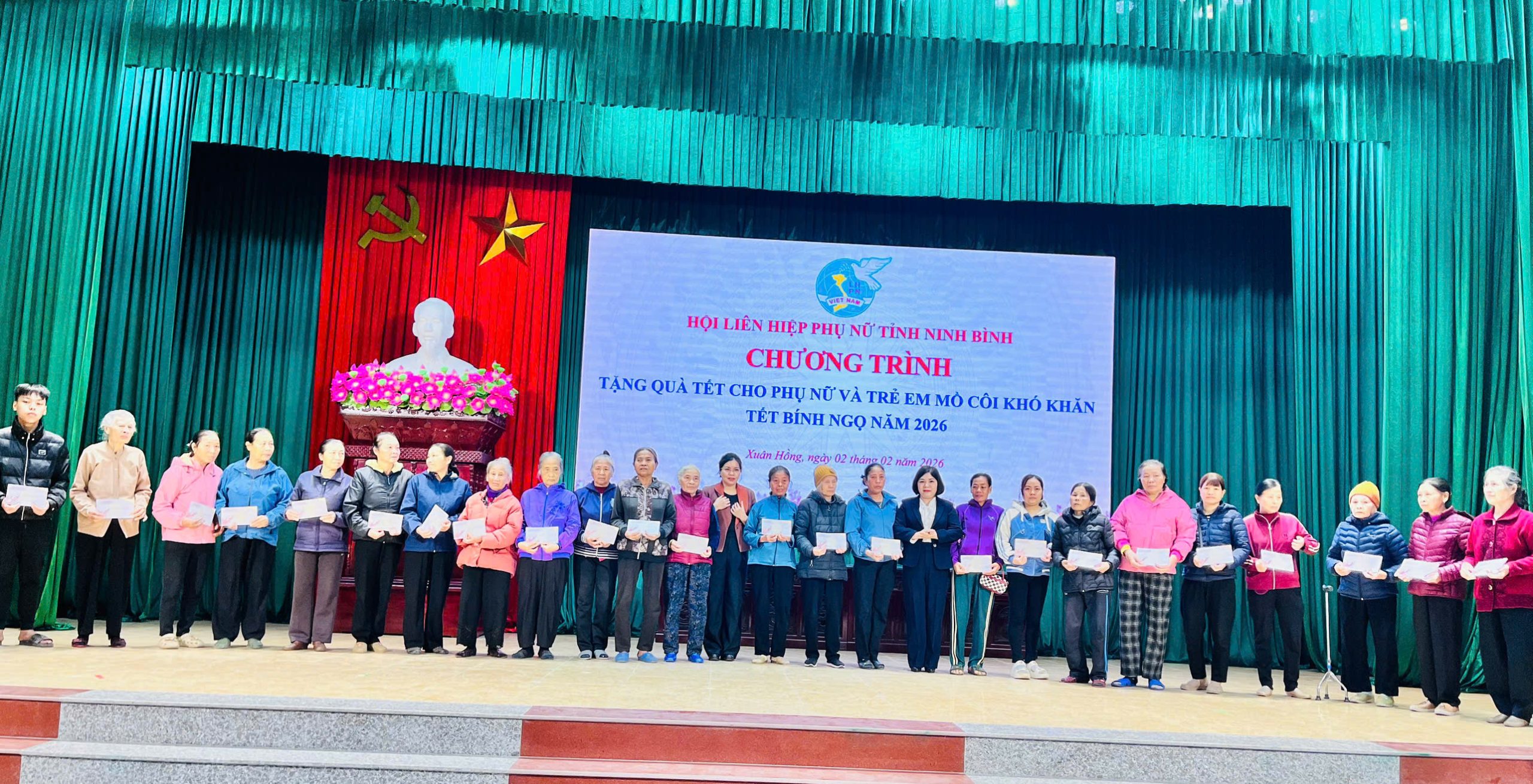 Sáng ngày 02/02/2026 đoàn đại biểu Hội LHPN tỉnh Ninh Bình và cán bộ Đảng viên Ban công tác phụ nữ Hội LHPN tỉnh đã về dâng hương tại nhà lưu niệm Tổng Bí Thư Trường Chinh tại làng Hành Thiện xã Xuân Hồng và trao 50 xuất quà cho hội viên có hoàn cảnh đặc biệt khó khăn, trẻ em mô côi có hoàn cảnh khó khăn trên địa bàn xã Xuân Hồng.
