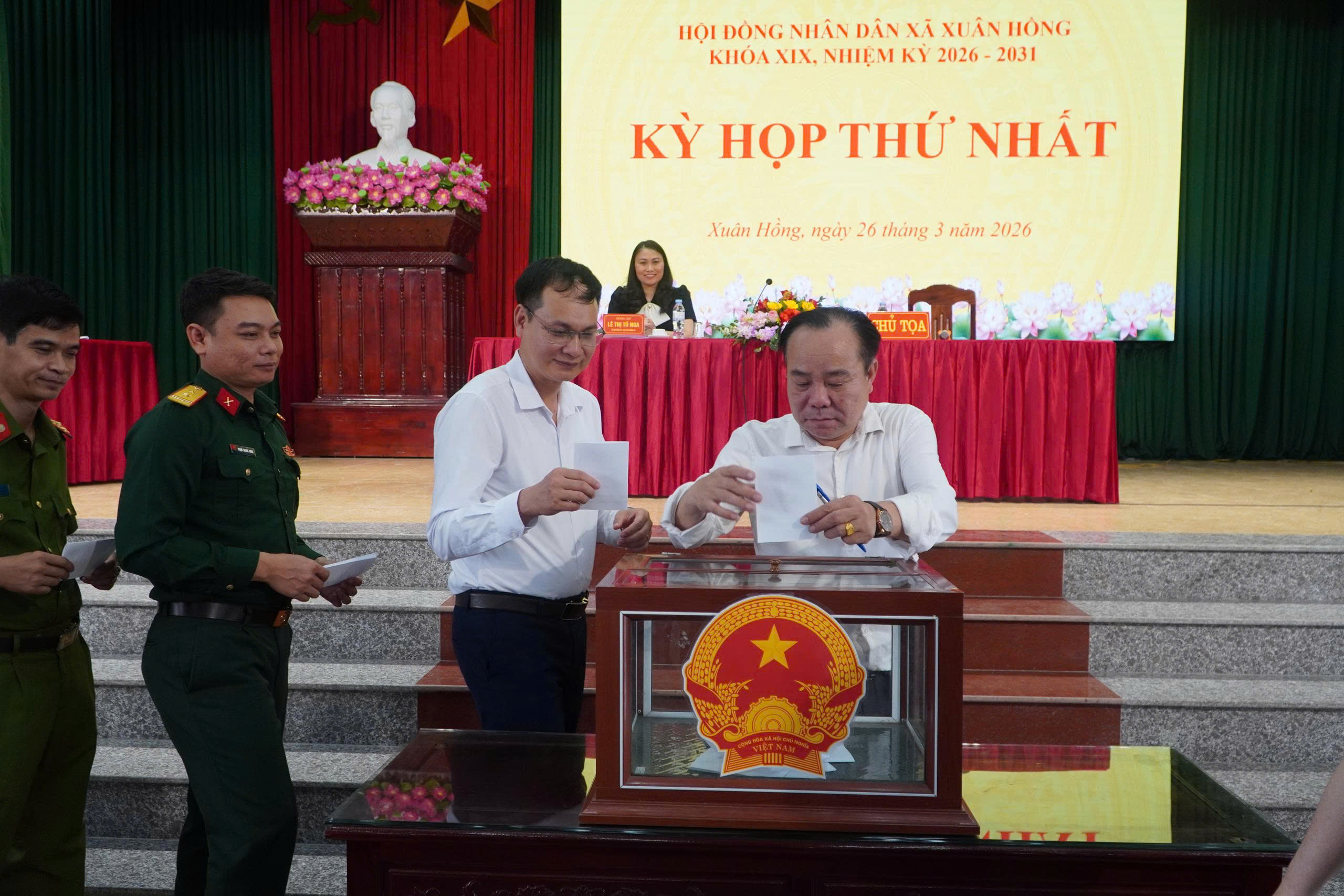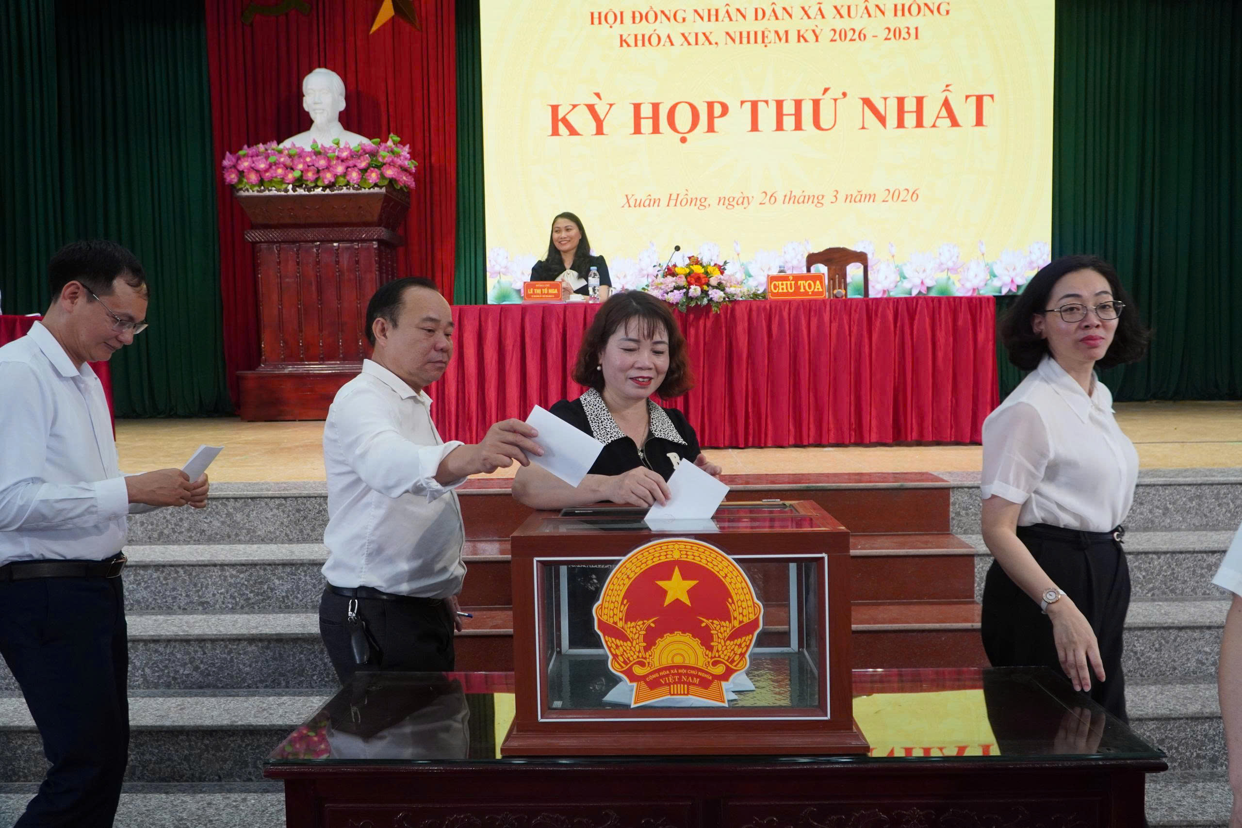 Sau một buổi làm việc khẩn trương và nghiêm túc Kỳ họp Hội đồng nhân dân xã Xuân Hồng lần thứ Nhất khóa XIX, nhiệm kỳ 2026 – 2031 đã hoàn thành toàn bộ nội dung chương trình đề ra và thành công tốt đẹp. Sự thống nhất cao phiếu bầu và biểu quyết trong tất cả các danh sách nhân sự không chỉ khẳng định uy tín của các đồng chí lãnh đạo mà còn thể hiện tinh thần đoàn kết, ý chí đồng lòng giữa Đảng bộ, chính quyền và nguyện vọng của cử tri xã Xuân Hồng. Đây là nền tảng vững chắc để bộ máy chính quyền địa phương nhiệm kỳ 2026 – 2031 hoạt động hiệu quả, quyết tâm thực hiện thắng lợi các mục tiêu phát triển kinh tế – xã hội của xã nhà trong nhiệm kỳ mới.