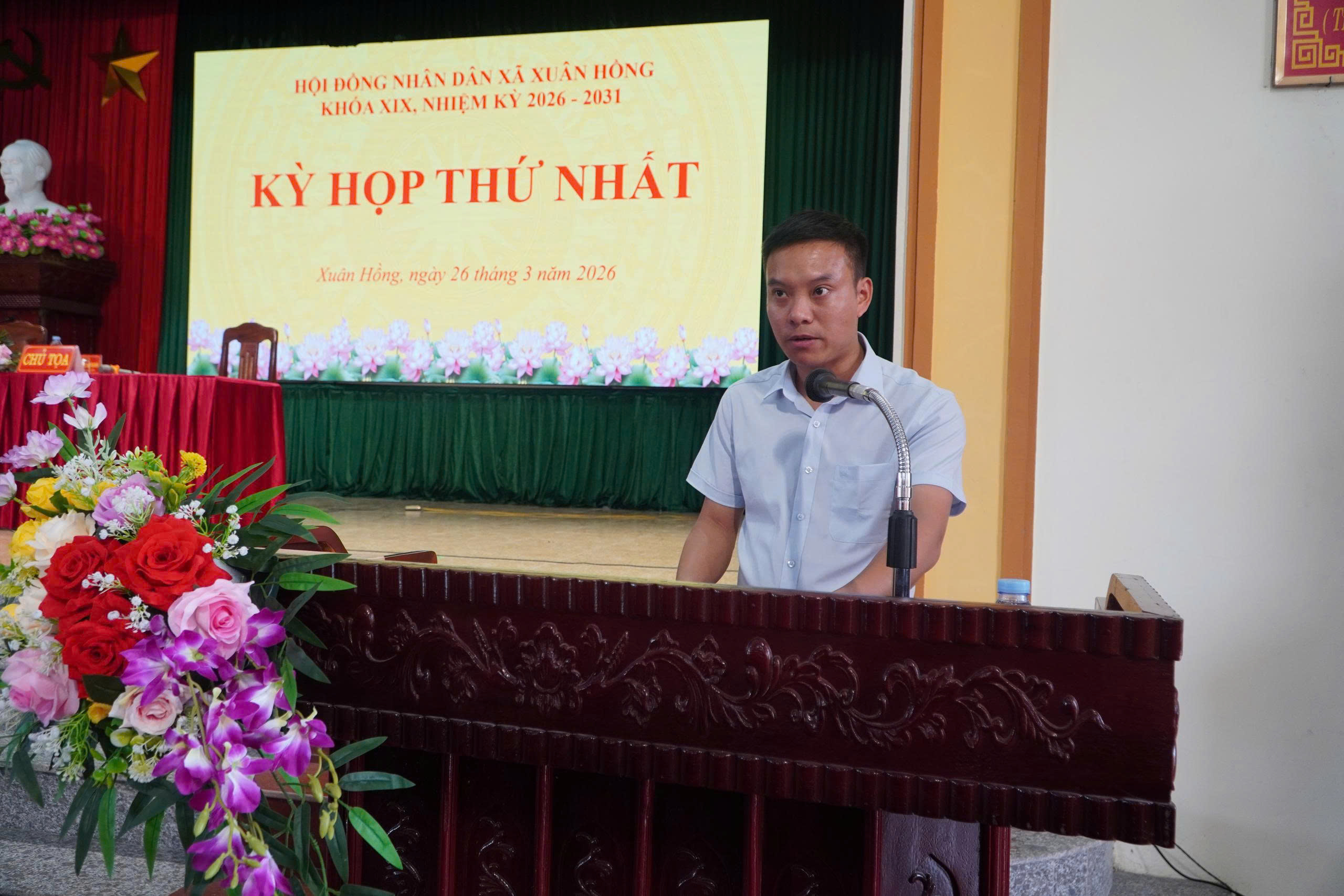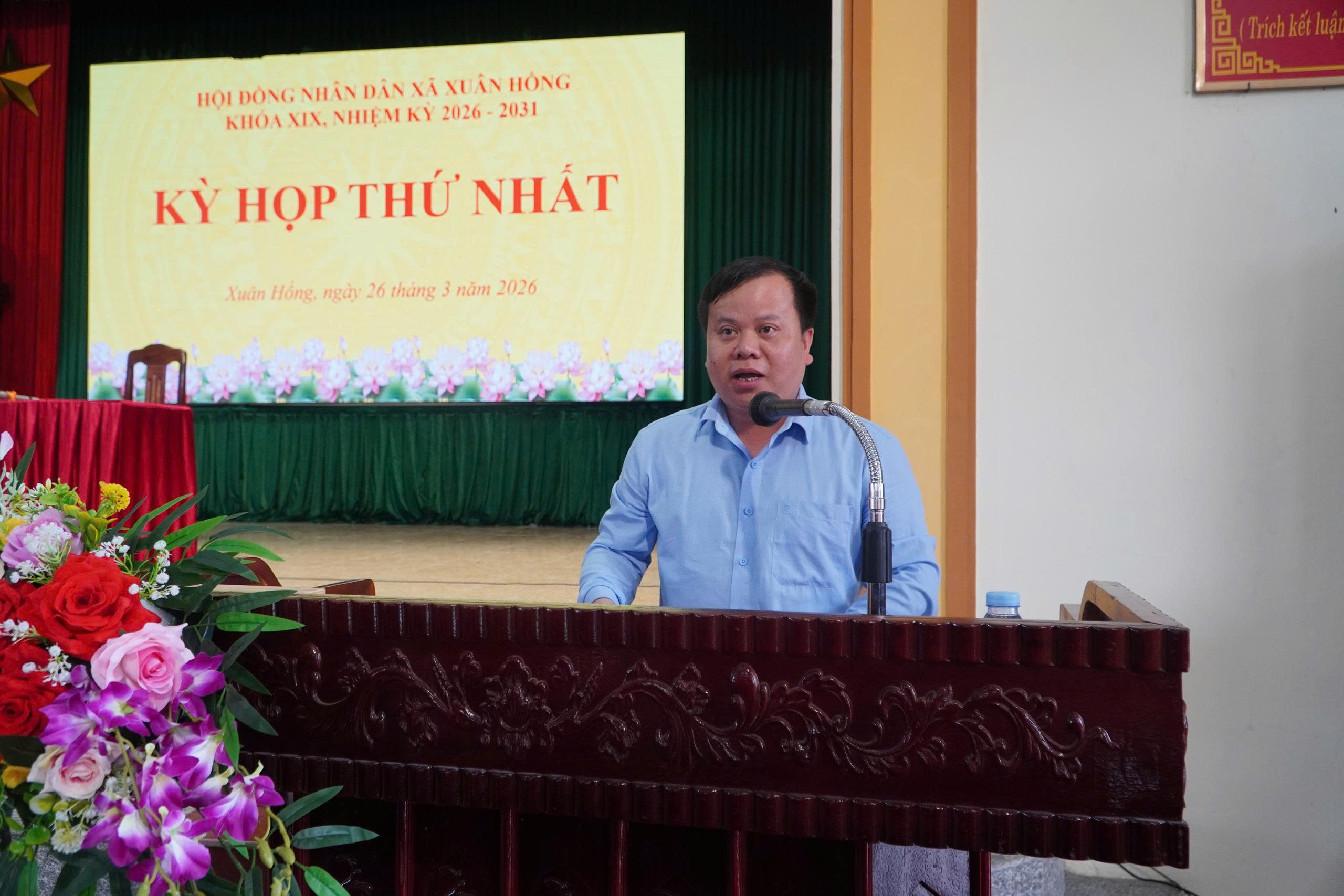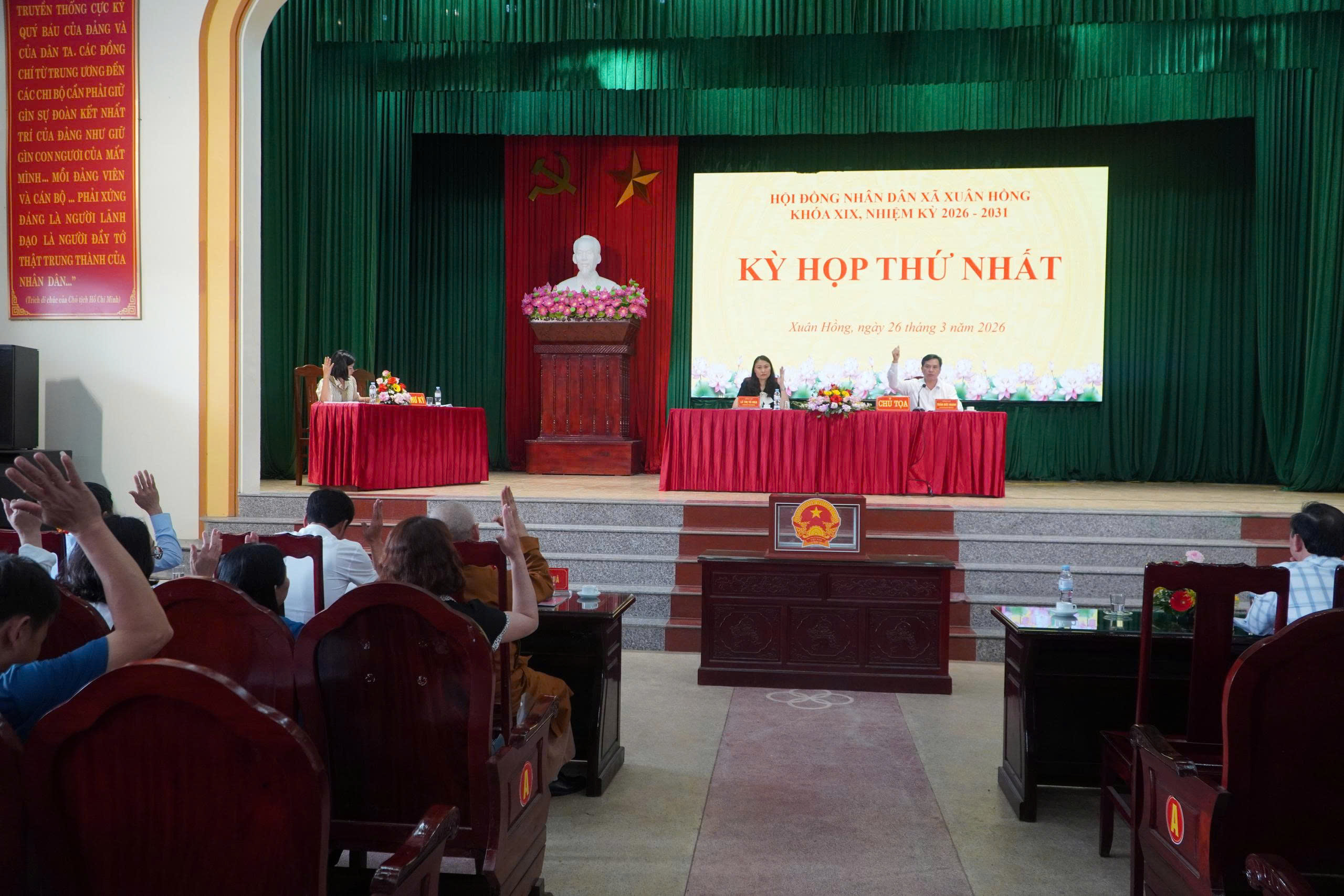 Chiều ngày 26/3/2026, Hội đồng nhân dân xã Xuân Hồng đã tổ chức Kỳ họp thứ Nhất khóa XIX, nhiệm kỳ 2026 – 2031, nhằm kiện toàn bộ máy chính quyền địa phương sau thành công của cuộc bầu cử đại biểu Quốc hội khóa XVI và đại biểu HĐND các cấp.