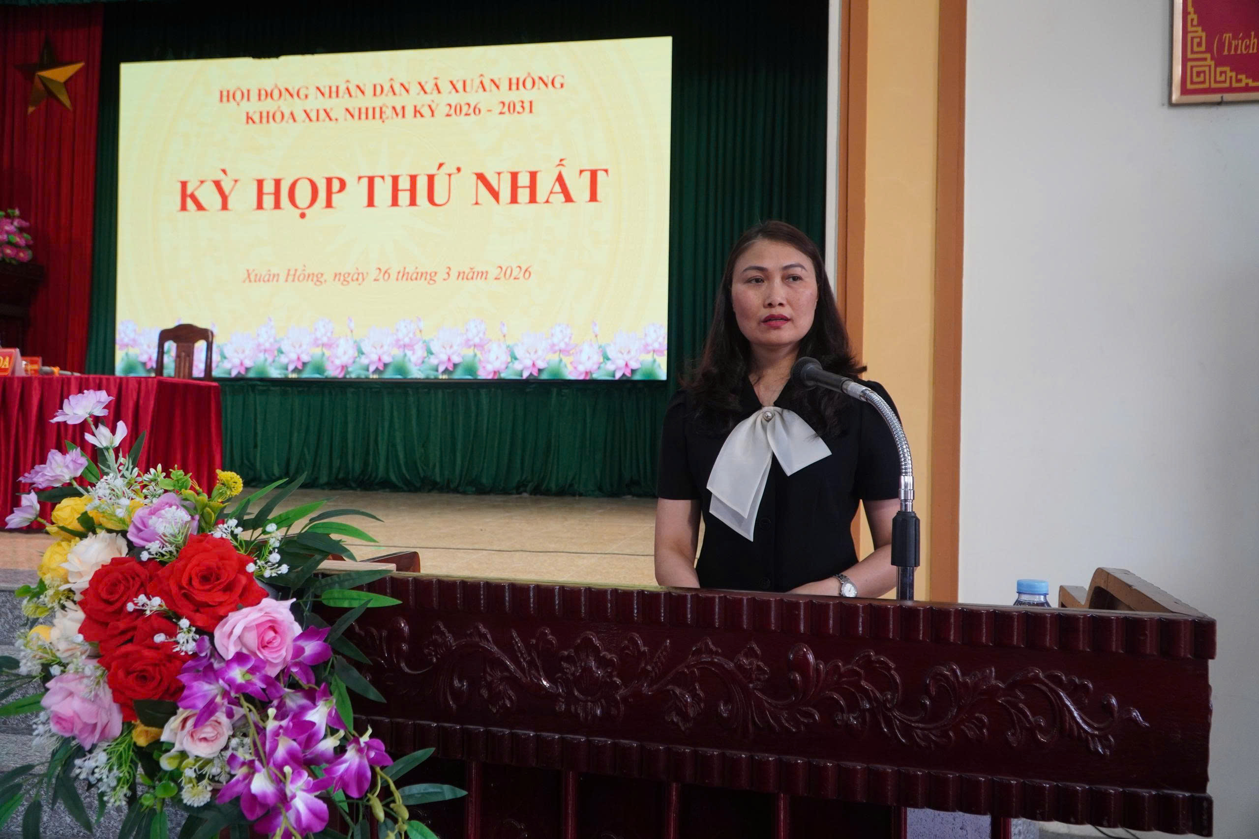 Phát biểu bế mạc kỳ họp, Bà Lê Thị Tố Nga – Bí thư Đảng ủy, Chủ tịch HĐND xã đánh giá cao tinh thần làm việc khẩn trương, nghiêm túc và trách nhiệm cao của các đại biểu và đưa ra các chỉ đạo trọng tâm để triển khai nhiệm vụ ngay sau kỳ họp đó là Thường trực HĐND – UBND xã chỉ đạo hoàn thiện ngay các thủ tục, hồ sơ trình cấp có thẩm quyền phê chuẩn các chức danh chủ chốt, ban hành Quy chế hoạt động, Chương trình công tác của cả nhiệm kỳ, và phân công nhiệm vụ theo phương châm “rõ người, rõ việc, rõ trách nhiệm”. Đẩy mạnh cải cách hành chính, chuyển đổi số, siết chặt kỷ luật thực thi công vụ và tập trung giải quyết các kiến nghị chính đáng của cử tri.Tăng cường sự phối hợp giữa HĐND, UBND với MTTQ và các tổ chức chính trị – xã hội; sự lãnh đạo, chỉ đạo của HĐND, UBND đối với các ban, phòng chuyên môn, các đơn vị sự nghiệp và các thôn (xóm) trên địa bàn để củng cố khối đại đoàn kết toàn dân, huy động sức mạnh tổng hợp phát triển kinh tế – xã hội. Nâng cao chất lượng hoạt động HĐND, đẩy mạnh ứng dụng công nghệ thông tin vào kỳ họp; tăng cường giám sát, thẩm tra và chuẩn bị chu đáo cho Kỳ họp thứ hai. Mỗi đại biểu cần giữ mối liên hệ chặt chẽ với cử tri, thường xuyên tu dưỡng đạo đức, năng lực và thực hiện đúng các cam kết của mình trước cử tri và nhân dân. Chủ tịch HĐND xã khẳng định: Thành công của kỳ họp thứ nhất là tiền đề quan trọng để xây dựng bộ máy chính quyền xã hoạt động hiệu lực, hiệu quả. HĐND xã kêu gọi tinh thần đoàn kết, trách nhiệm, chung sức, đồng lòng của từng đại biểu để từng bước vượt qua khó khăn, hoàn thành tốt nhiệm vụ được giao và thực hiện thắng lợi các nhiệm vụ phát triển kinh tế – xã hội trong nhiệm kỳ 2026 – 2031, xây dựng xã Xuân Hồng ngày càng giàu mạnh, văn minh.