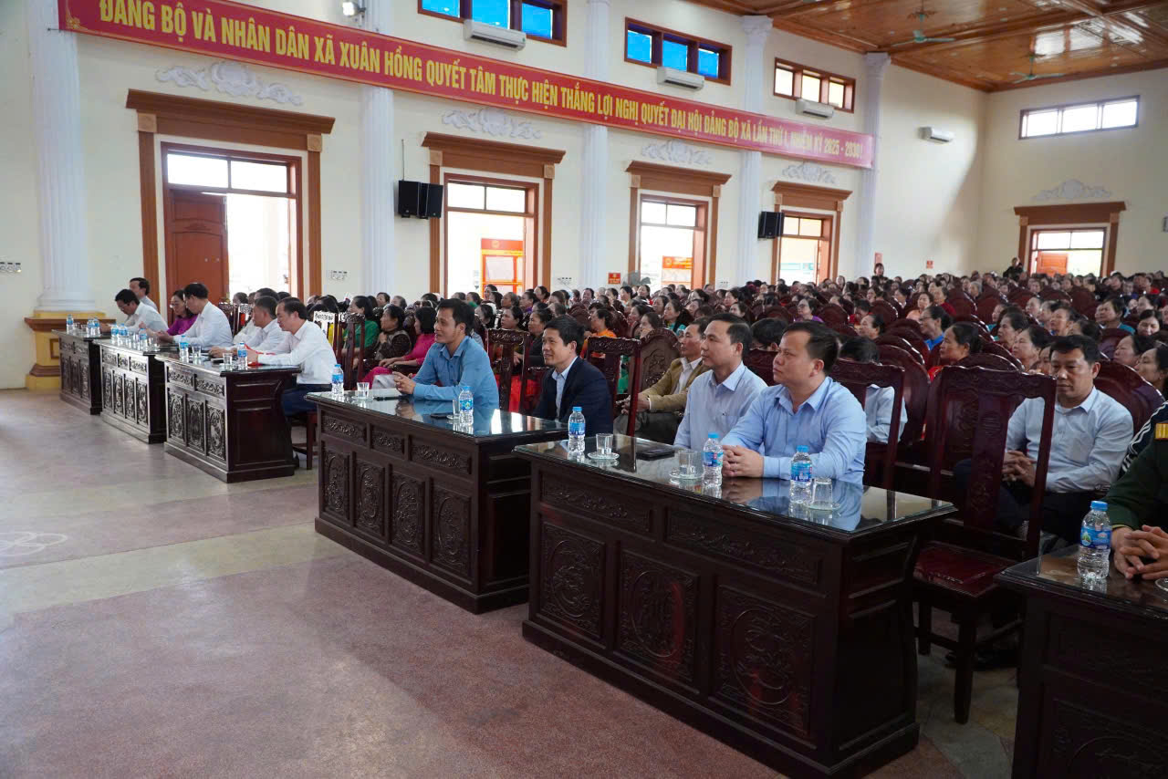 Tại hội nghị, các đại biểu đã cùng nhau ôn lại lịch sử ngày Quốc tế Phụ nữ 8/3 và truyền thống vẻ vang của phụ nữ Việt Nam qua các thời kỳ. Diễn văn do đồng chí Chủ tịch Hội Liên hiệp phụ nữ xã trình bày khẳng định: Trong tiến trình lịch sử dân tộc, phụ nữ Việt Nam luôn là biểu tượng của tinh thần quật cường và đức hy sinh. Từ tiếng vang của cuộc khởi nghĩa Hai Bà Trưng, Bà Triệu đến những nữ tướng như Bùi Thị Xuân, Nguyễn Thị Định, chị Út Tịch… tất cả đã viết nên trang sử vàng chói lọi. Từ khí phách của Hai Bà Trưng đến những đóng góp thầm lặng của các bà, các mẹ trong sự nghiệp đổi mới, phụ nữ luôn là nhân tố quan trọng dệt thêu nên gấm vóc non sông. Tiếp nối truyền thống đó, phụ nữ xã Xuân Hồng hôm nay vừa kế thừa lòng yêu nước và không ngừng tự đổi mới để trở thành những người phụ nữ “Tự tin, tự trọng, trung hậu, đảm đang”. Hiện nay với hơn 7.400 hội viên, phụ nữ xã Xuân Hồng không chỉ giữ lửa ấm gia đình mà còn khẳng định vai trò nòng cốt trong mọi lĩnh vực chính trị, kinh tế, xã hội, đóng góp quan trọng cho sự phát triển của quê hương. Đặc biệt, sau dấu mốc sáp nhập từ 4 xã (Xuân Thượng, Xuân Châu, Xuân Thành, Xuân Hồng) vào ngày 1/7/2025, các cấp Hội đã nhanh chóng ổn định tổ chức, tích cực tham gia xây dựng chính quyền địa phương vững mạnh. Cán bộ hội viên phụ nữ đã hăng hái tham gia lao động sản xuất, xuất hiện nhiều gương điển hình tiêu biểu trong phát triển kinh tế hộ gia đình. Duy trì hiệu quả cuộc vận động “Xây dựng gia đình 5 không 3 sạch”, “Gia đình 5 có 3 sạch, 3 an”, góp phần thực hiện thắng lợi các Nghị quyết của Đảng bộ và Hội cấp trên. Hội luôn bám sát sự chỉ đạo của Đảng ủy, phối hợp chặt chẽ với Mặt trận Tổ quốc và các đoàn thể để giữ vững an ninh chính trị, trật tự an toàn xã hội tại địa phương.