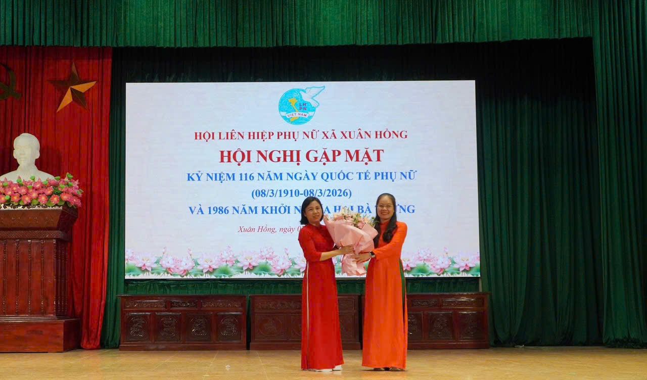 Hòa chung không khí phấn khởi của phụ nữ cả nước, chiều ngày 07/03/2026, Ban Thường vụ Hội Liên hiệp phụ nữ xã Xuân Hồng long trọng tổ chức hội nghị Kỷ niệm 116 năm Ngày Quốc tế Phụ nữ 8/3 và 1986 năm khởi nghĩa Hai Bà Trưng. Đây là dịp để nhìn lại chặng đường lịch sử vẻ vang và khẳng định vị thế của người phụ nữ trong giai đoạn phát triển mới của địa phương.