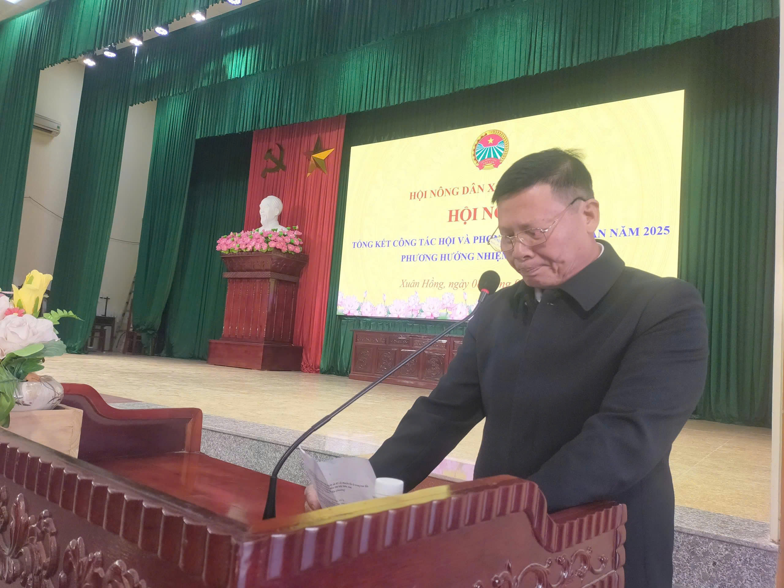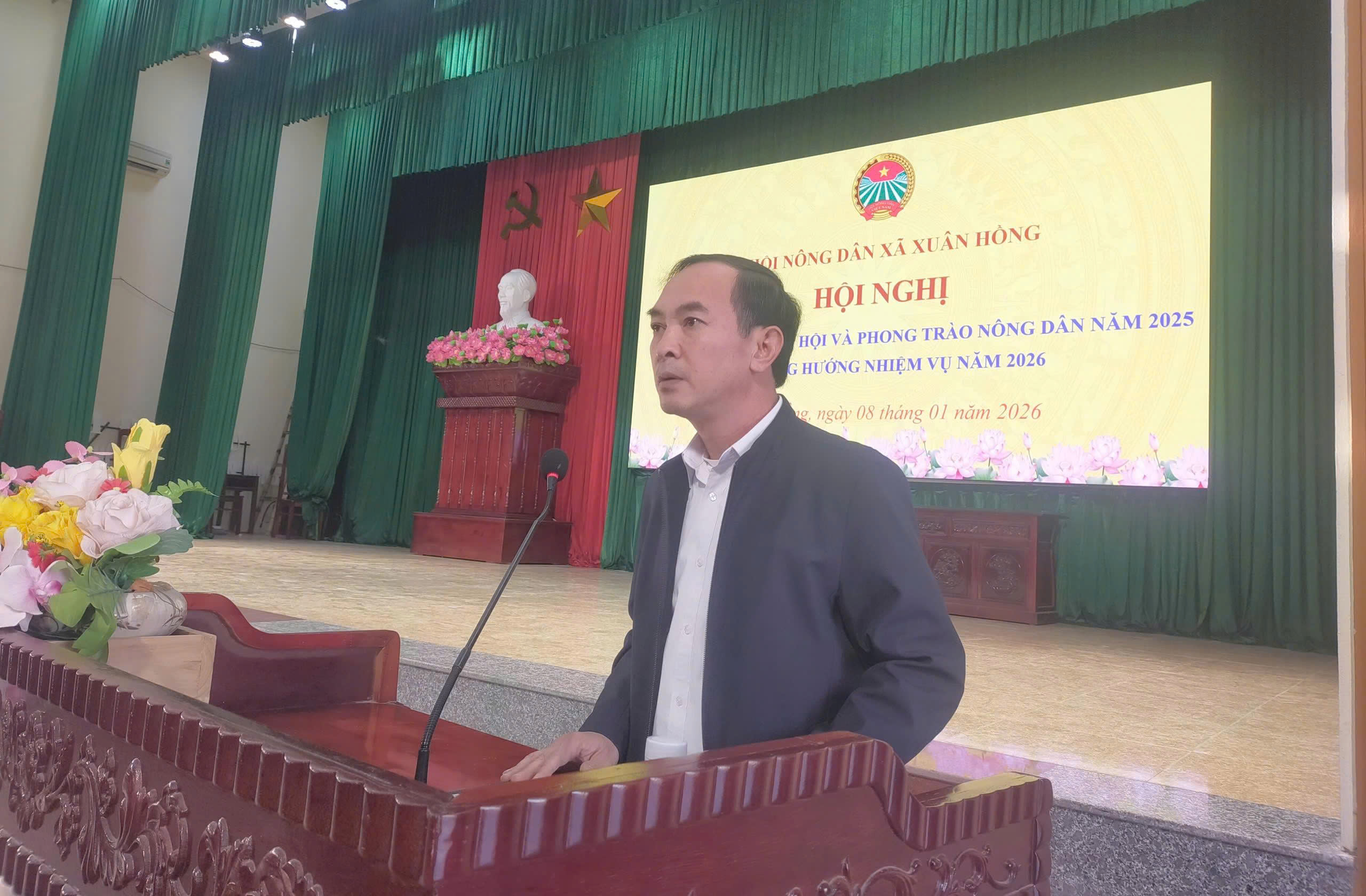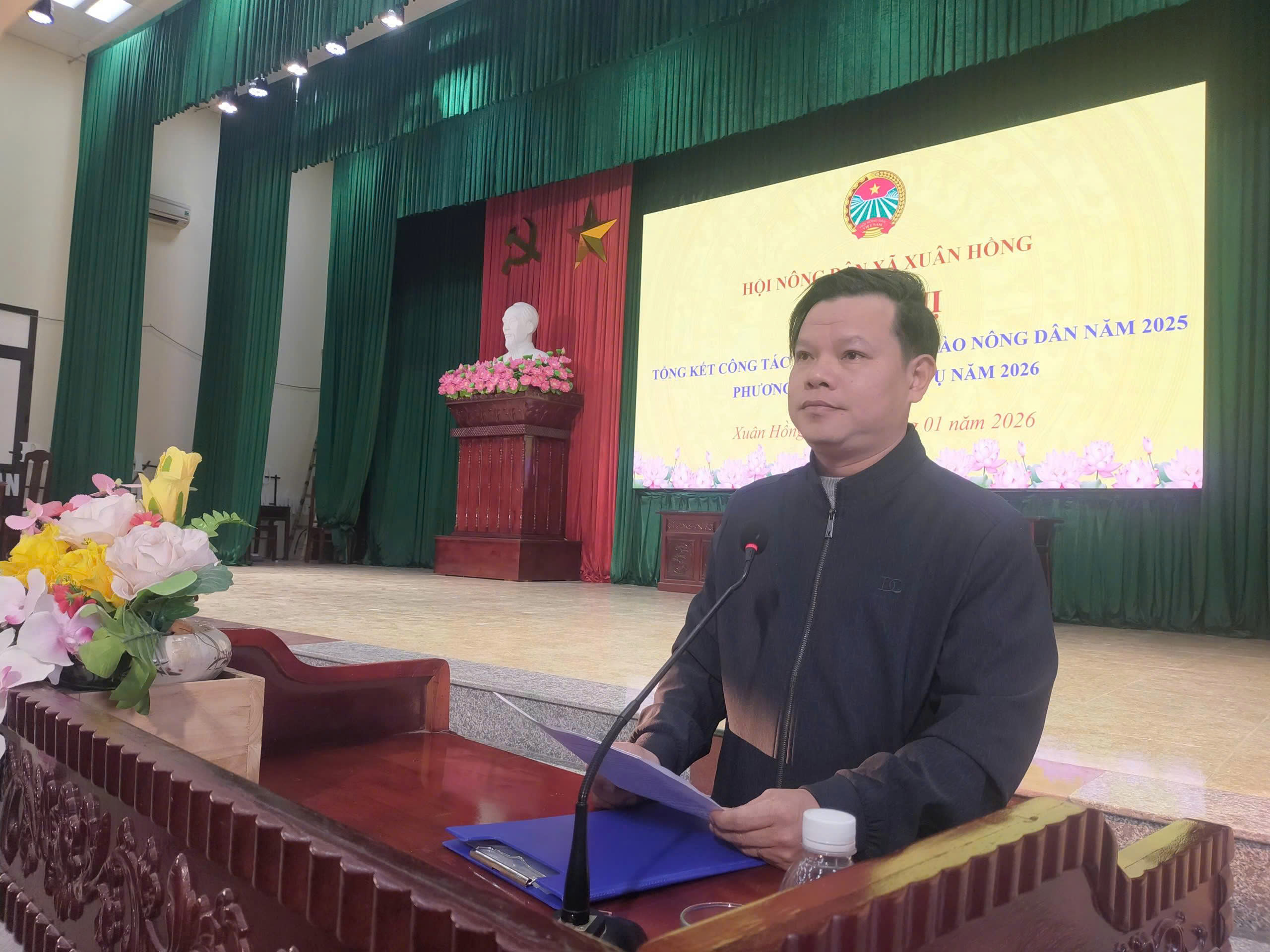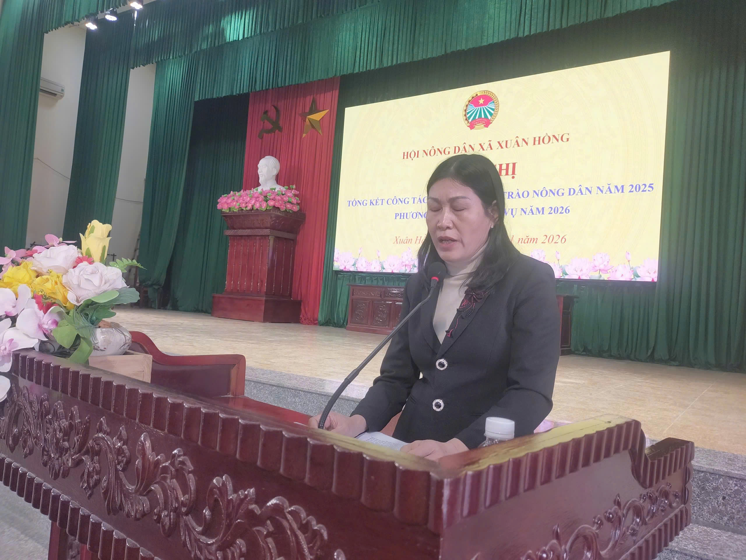 Thực hiện chương trình công tác Hội và phong trào Nông dân năm 2025, Chiều ngày 08/01/2025, tại Nhà văn hoá xã Xuân Hồng, Hội Nông dân xã tổ chức Hội nghị tổng kết công tác Hội và Phong trào nông dân năm 2025, triển khai nhiệm vụ trọng tâm năm 2026, chia tay các đồng chí thôi không tham gia cán bộ Hội nông dân nhiệm kỳ 2025-2030.
