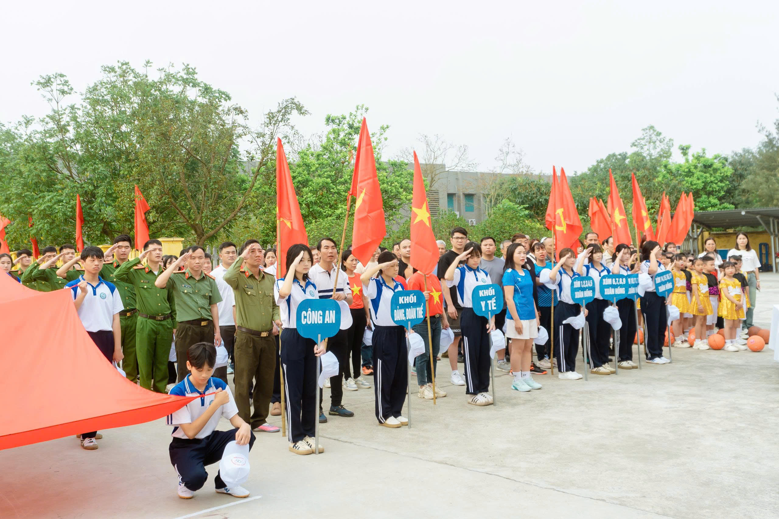 Tham dự buổi lễ có các đồng chí Thường trực Đảng ủy, HĐND, lãnh đạo UBND xã; các đồng chí Ủy viên Ban Thường vụ, Ban Chấp hành Đảng bộ xã; Thủ trưởng các cơ quan, ban ngành, đoàn thể; Hiệu trưởng các trường Mầm non, Tiểu học và Trung học cơ sở trên địa bàn xã; lãnh đạo Bệnh viện đa khoa Xuân Trường, Trạm Y tế xã, Công ty Bia ong Xuân Thủy; Bí thư chi bộ, Trưởng thôn, xóm, Trưởng Ban CTMT cơ sở cùng đông đảo cán bộ công chức, viên chức; cán bộ, chiến sỹ công an, quân sự xã và nhân dân các thôn, xóm trên địa bàn.
