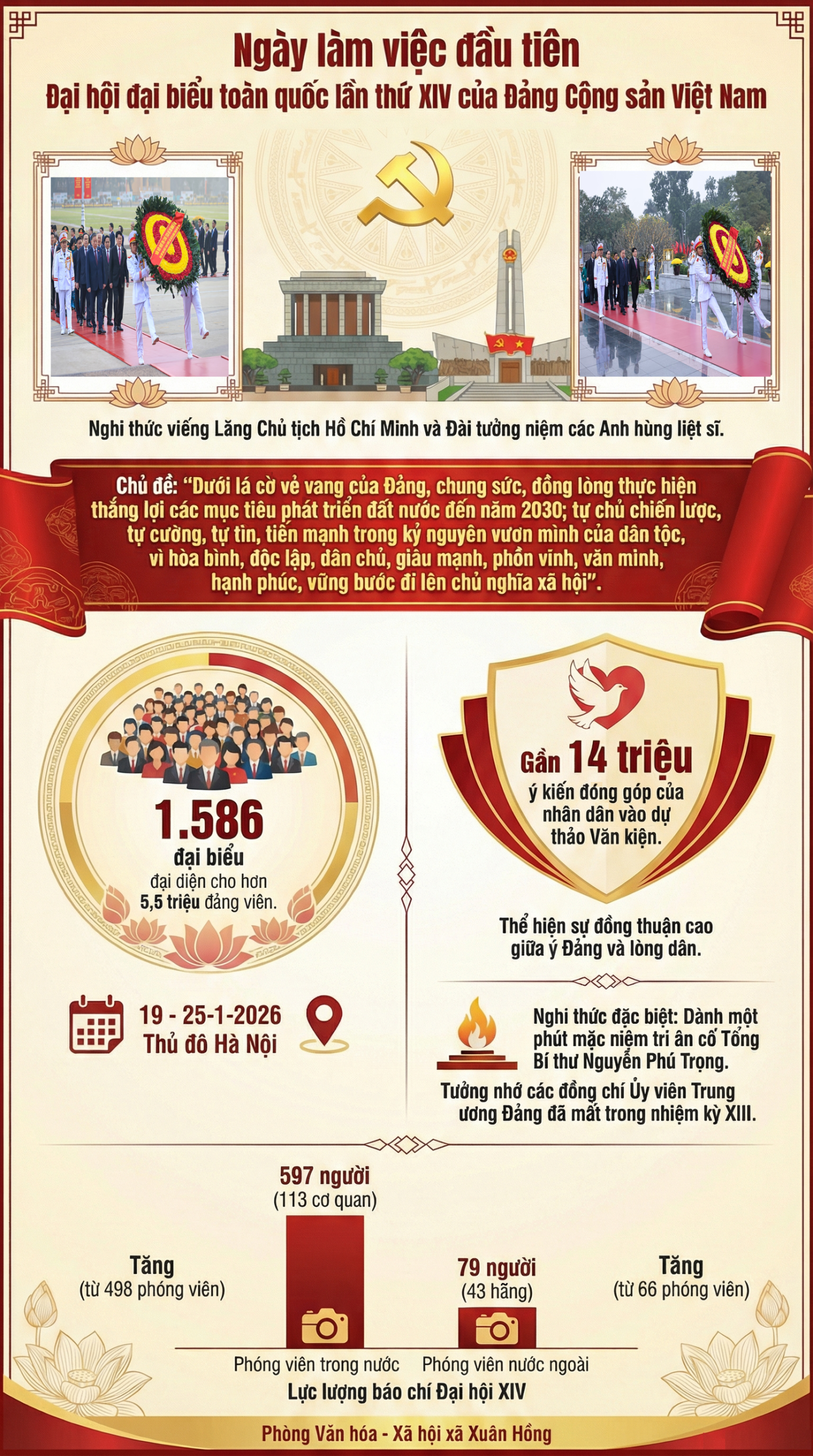Ngày làm việc đầu tiên Đại hội đại biểu toàn quốc lần thứ XIV của Đảng Cộng sản Việt Nam
