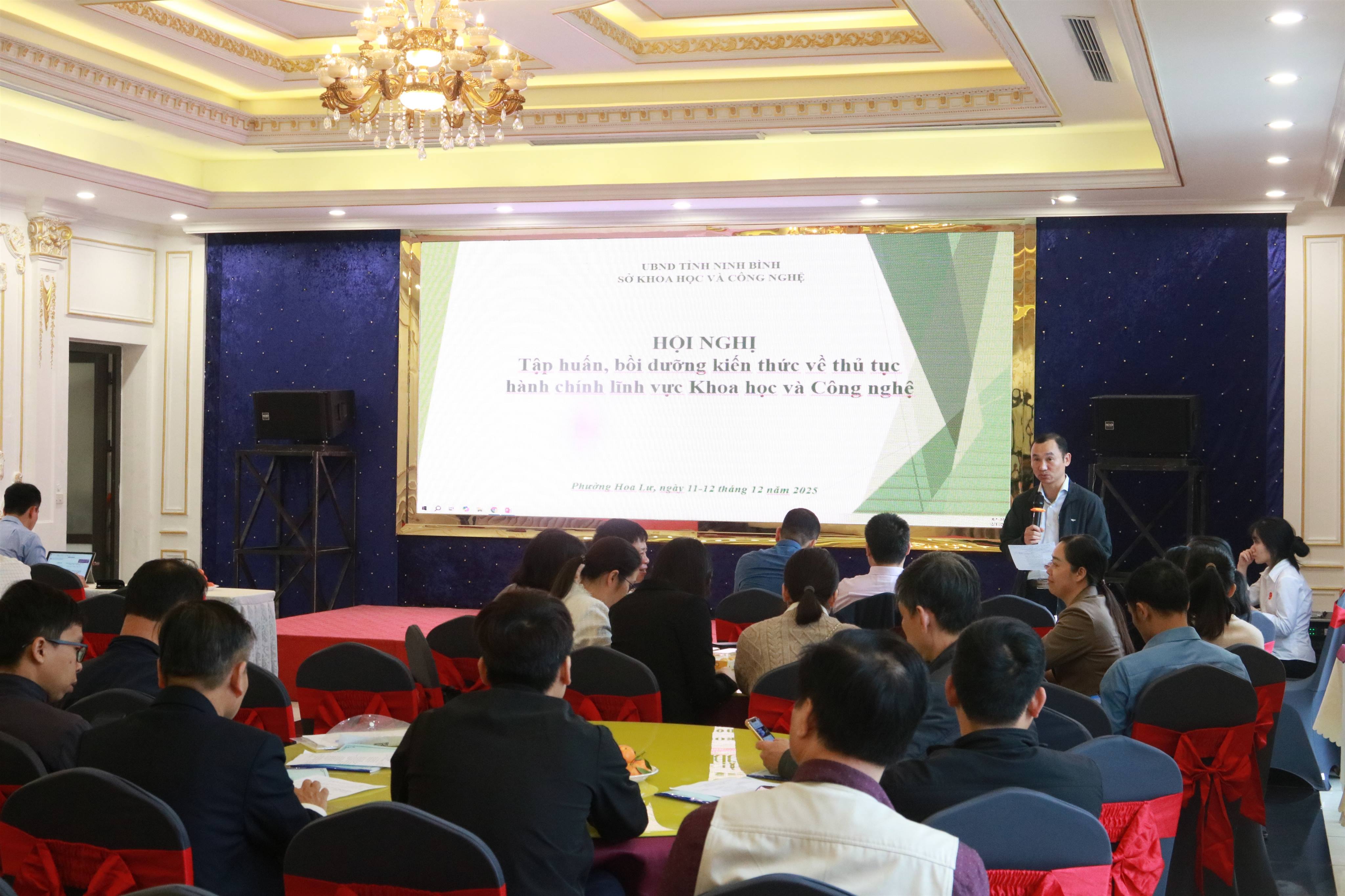 Nhằm tăng cường năng lực thực thi công vụ và chuẩn hóa quy trình quản lý nhà nước trong lĩnh vực khoa học và công nghệ, ngày 10-11/12/2025 Sở Khoa học và Công nghệ tỉnh Ninh Bình đã tổ chức Hội nghị tập huấn, bồi dưỡng kiến thức về thủ tục hành chính dành cho đội ngũ cán bộ, công chức, viên chức thuộc các sở, ban ngành và các đơn vị cơ sở trên địa bàn tỉnh.