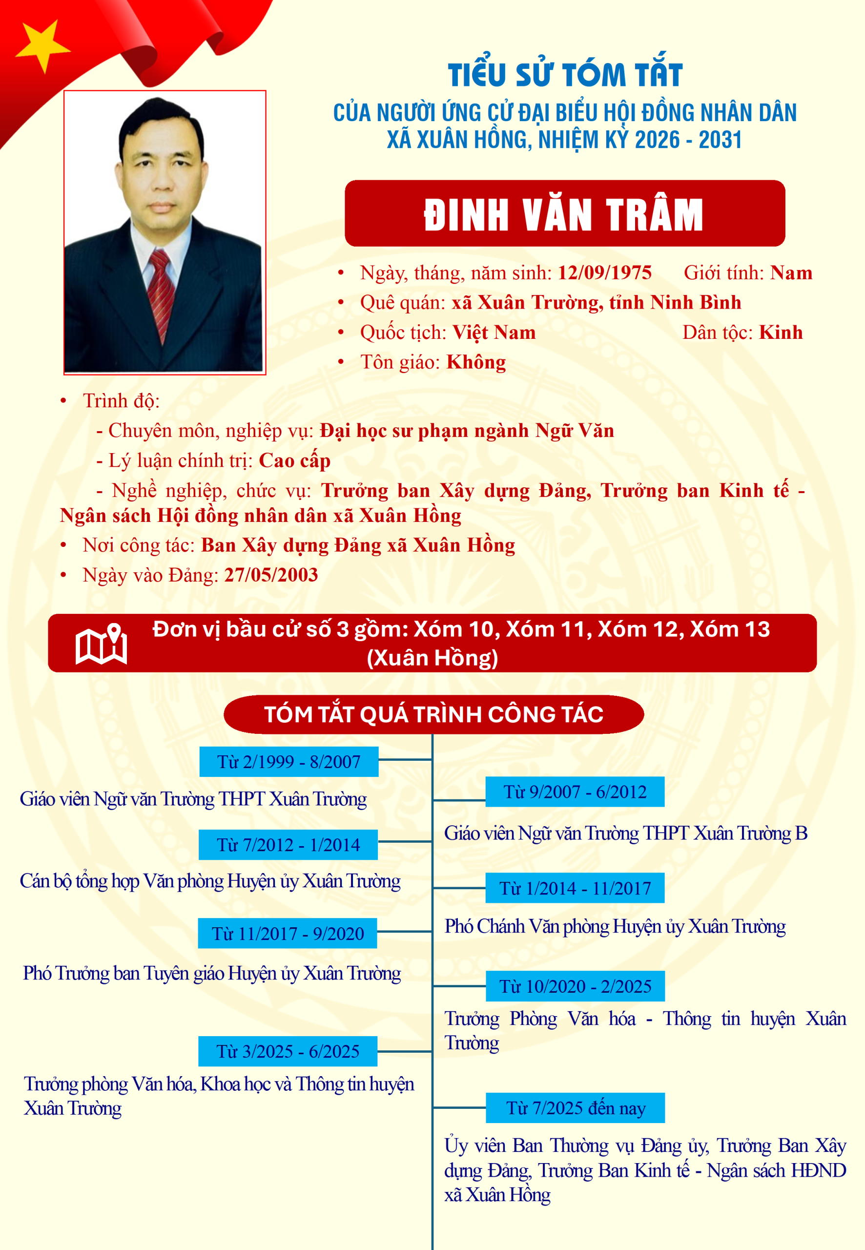 Trang thông tin điện tử xã trân trọng giới thiệu tóm tắt tiểu sử của ông Đinh Văn Trâm – ứng cử Hội đồng nhân dân xã nhiệm xã nhiệm kỳ 2026 – 2031