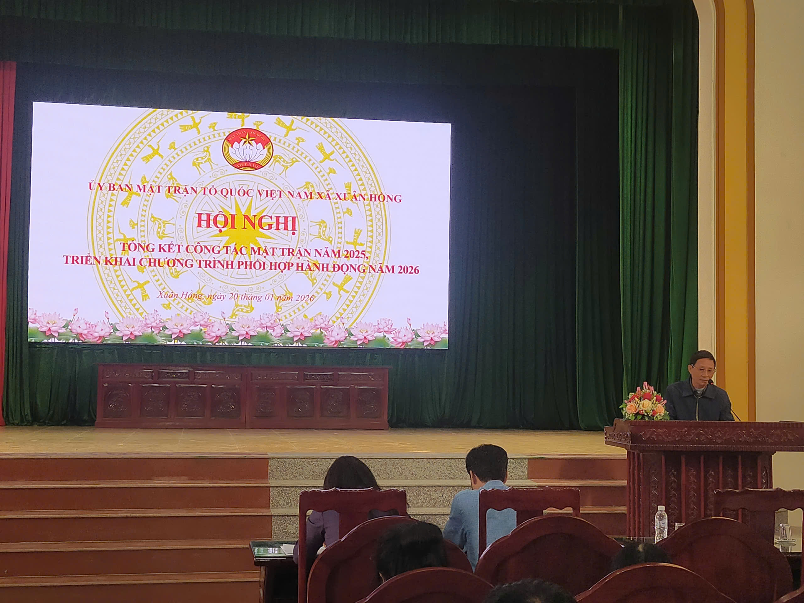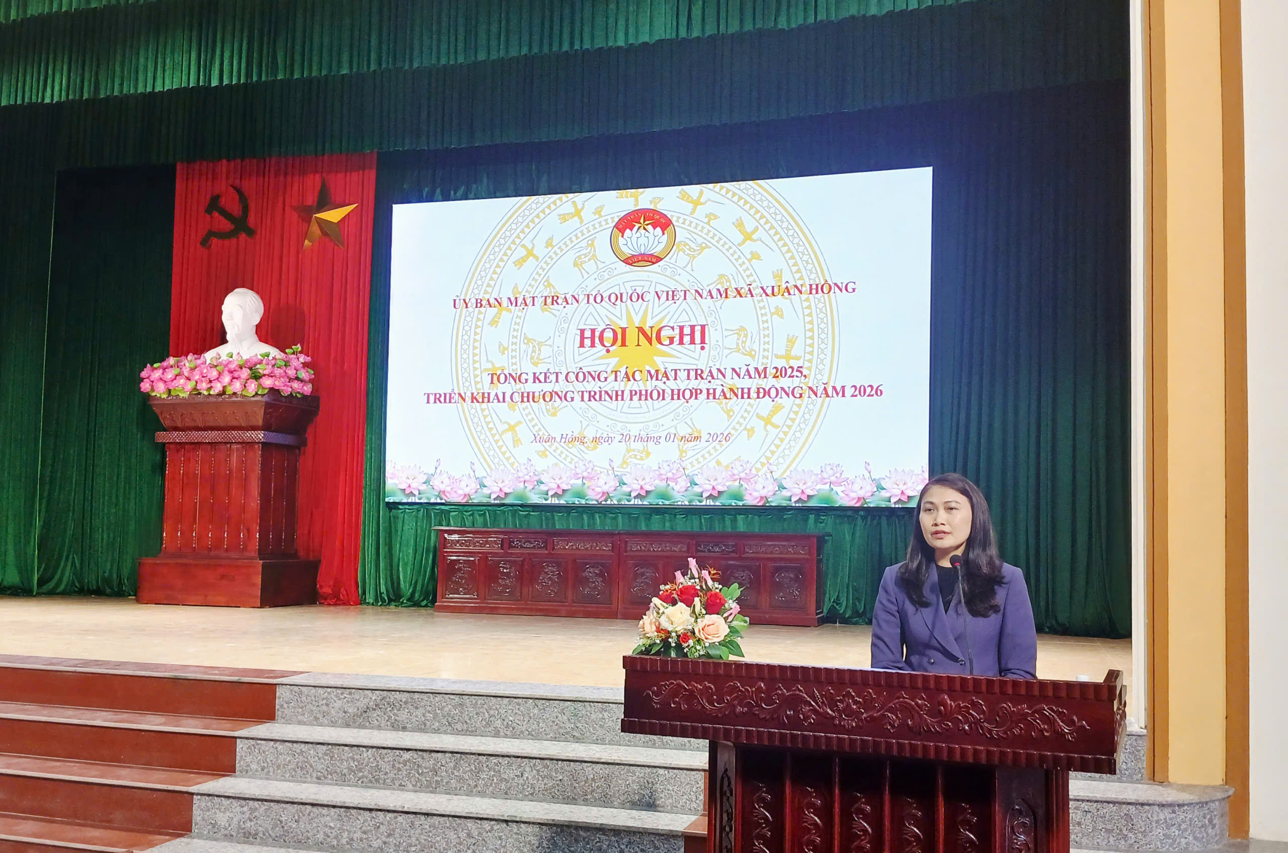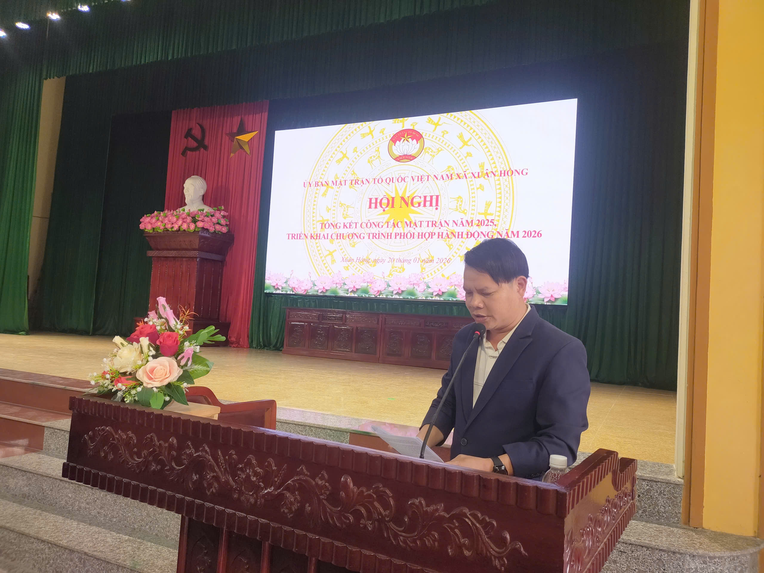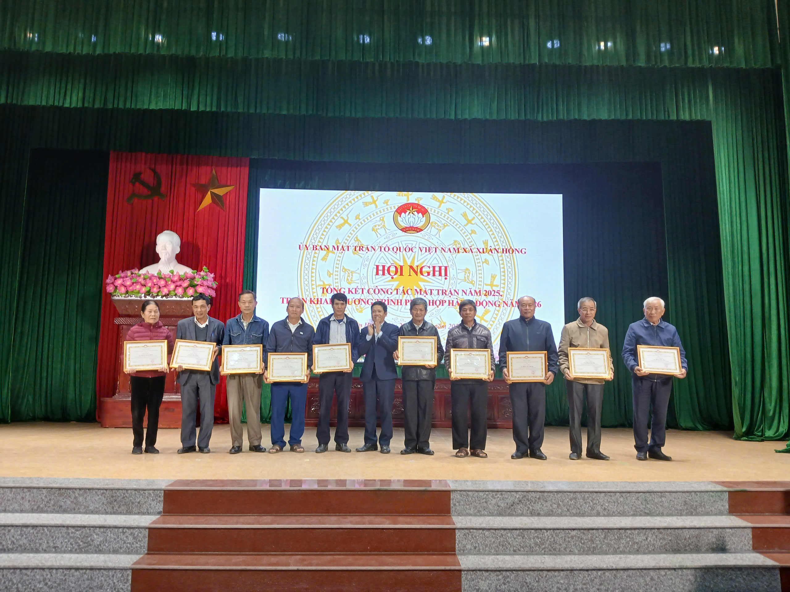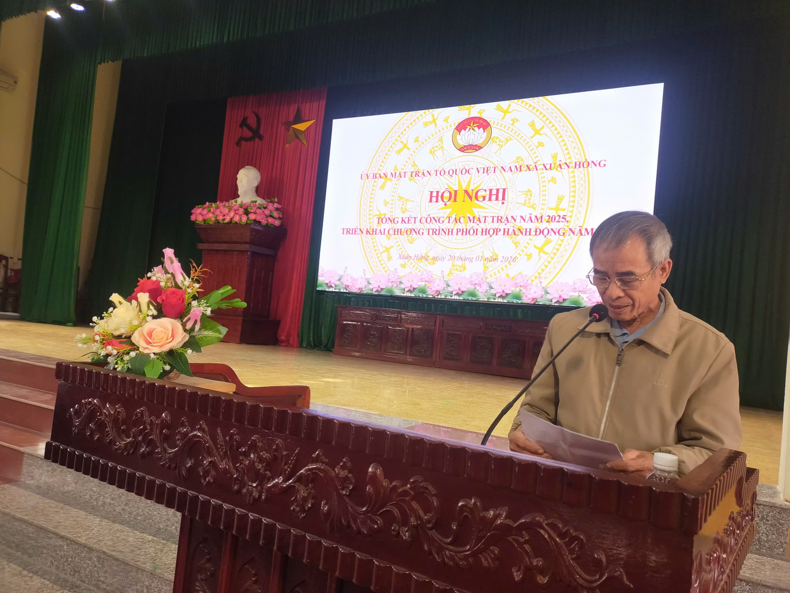 Thực hiện chương trình công tác Mặt trận năm 2025, Chiều ngày 20/01/2026, tại Nhà văn hoá xã Xuân Hồng, Ủy ban MTTQ xã tổ chức Hội nghị tổng kết công tác Mặt trận năm 2025, triển khai nhiệm vụ trọng tâm năm 2026, chia tay các đồng chí thôi không tham gia cán bộ Mặt trận nhiệm kỳ 2025-2030.