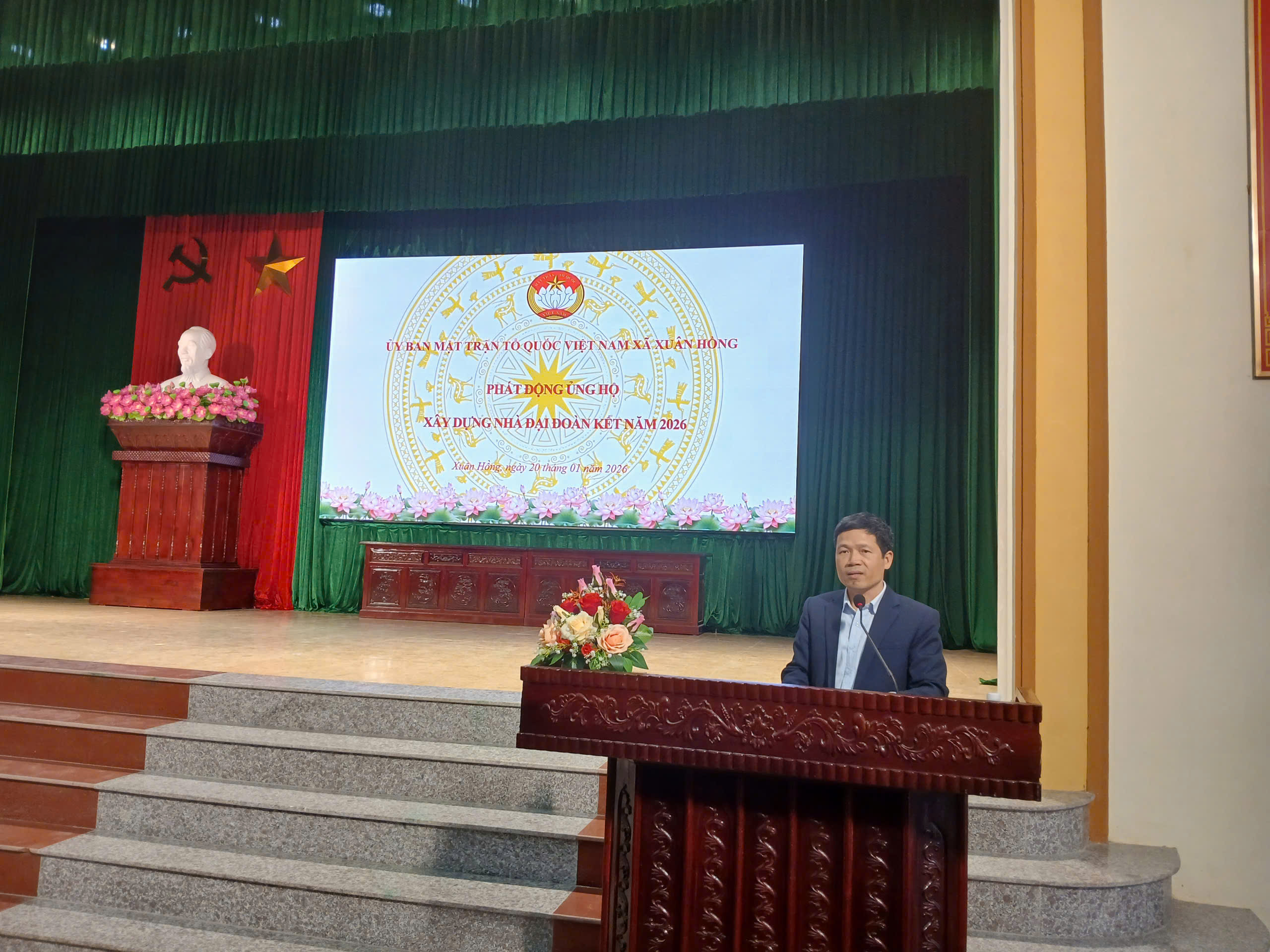 Trong không khí thi đua lập thành tích chào mừng Đại hội đại biểu toàn Quốc lần thứ XIV của Đảng và cuộc bầu cử đại biểu Quốc Hội và HĐND các cấp, nhiệm kỳ 2026-2031, Tại hội nghị Ông Đỗ Văn Minh – Ủy viên BTV Đảng ủy, Chủ tịch UB MTTQ xã phát động ủng hộ “xây dựng nhà đại đoàn kết” cho hộ có hoàn cảnh khó khăn trên địa bàn.
