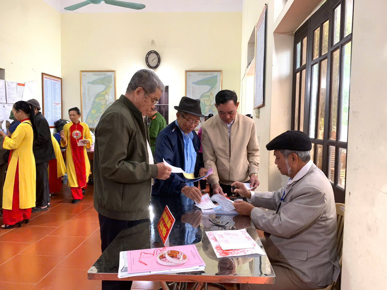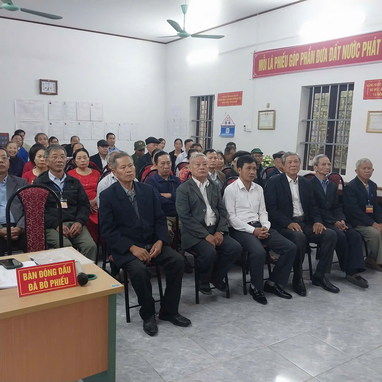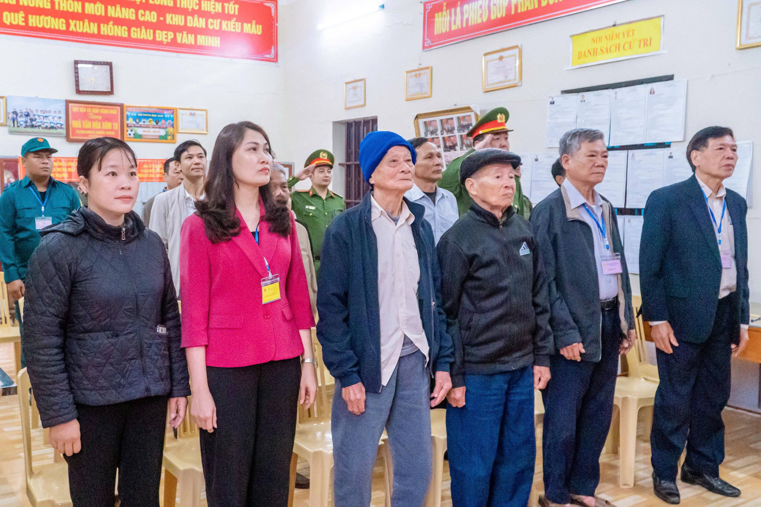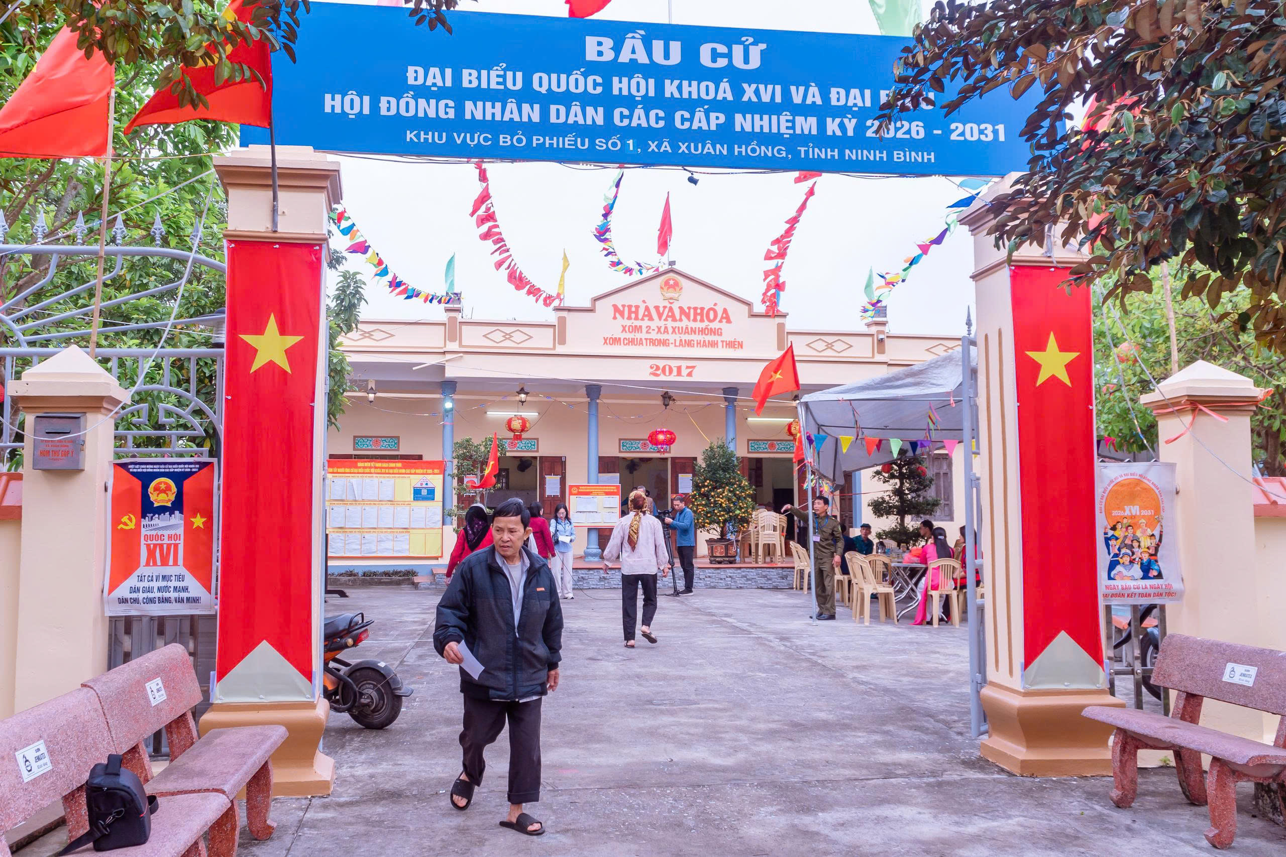 Ngay từ sáng sớm, tại tất cả các khu vực bỏ phiếu được tổ chức tại Nhà văn hóa các thôn xóm, từ các cụ ông, cụ bà cho đến các cử tri trẻ lần đầu tiên đi bỏ phiếu, ai ai cũng nô nức với lá phiếu trên tay đến các điểm bầu cử để thực hiện quyền và nghĩa vụ của mình, bầu ra những người tài đức để đại diện cho ý chí và nguyện vọng của nhân dân. Những cử tri cao tuổi nhất đã vinh dự được là người bỏ những lá phiếu đầu tiên vào hòm phiếu, kỳ vọng lá phiếu của mình sẽ chọn được những đại biểu Quốc hội, đại biểu Hội đồng nhân dân có bản lĩnh, trí tuệ, thực sự gắn bó với nhân dân hơn, gần dân hơn, để đưa đất nước ngày càng phát triển, làm cho đời sống vật chất, tinh thần của nhân dân ngày một nâng cao. Trong dòng cử tri đến bỏ phiếu từ sớm có nhiều cử tri trẻ lần đầu thực hiện quyền công dân đều bày tỏ niềm vinh dự, tự hào xen lẫn háo hức khi lần đầu tiên được tham gia bầu cử nên đã tìm hiểu kỹ thông tin các ứng cử viên, để lựa chọn người xứng đáng và hy vọng những đại biểu được bầu sẽ lắng nghe tiếng nói của người dân, đặc biệt là thế hệ trẻ. Không khí tại các điểm bỏ phiếu vừa nền nếp, trang trọng, vừa rộn ràng bởi dòng cử tri liên tục có mặt. Mỗi người đều thể hiện sự phấn khởi, nghiêm túc và trách nhiệm trong ngày hội lớn của đất nước. Các cử tri đóng dấu đã bỏ phiếu đúng quy trình.