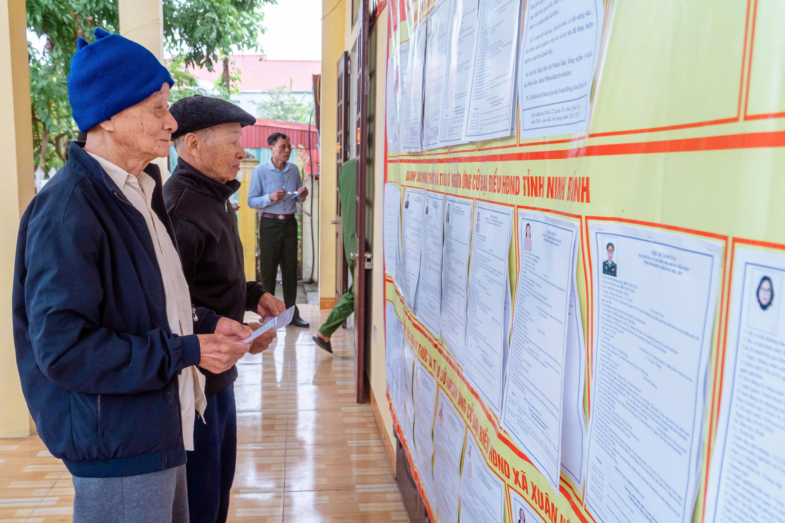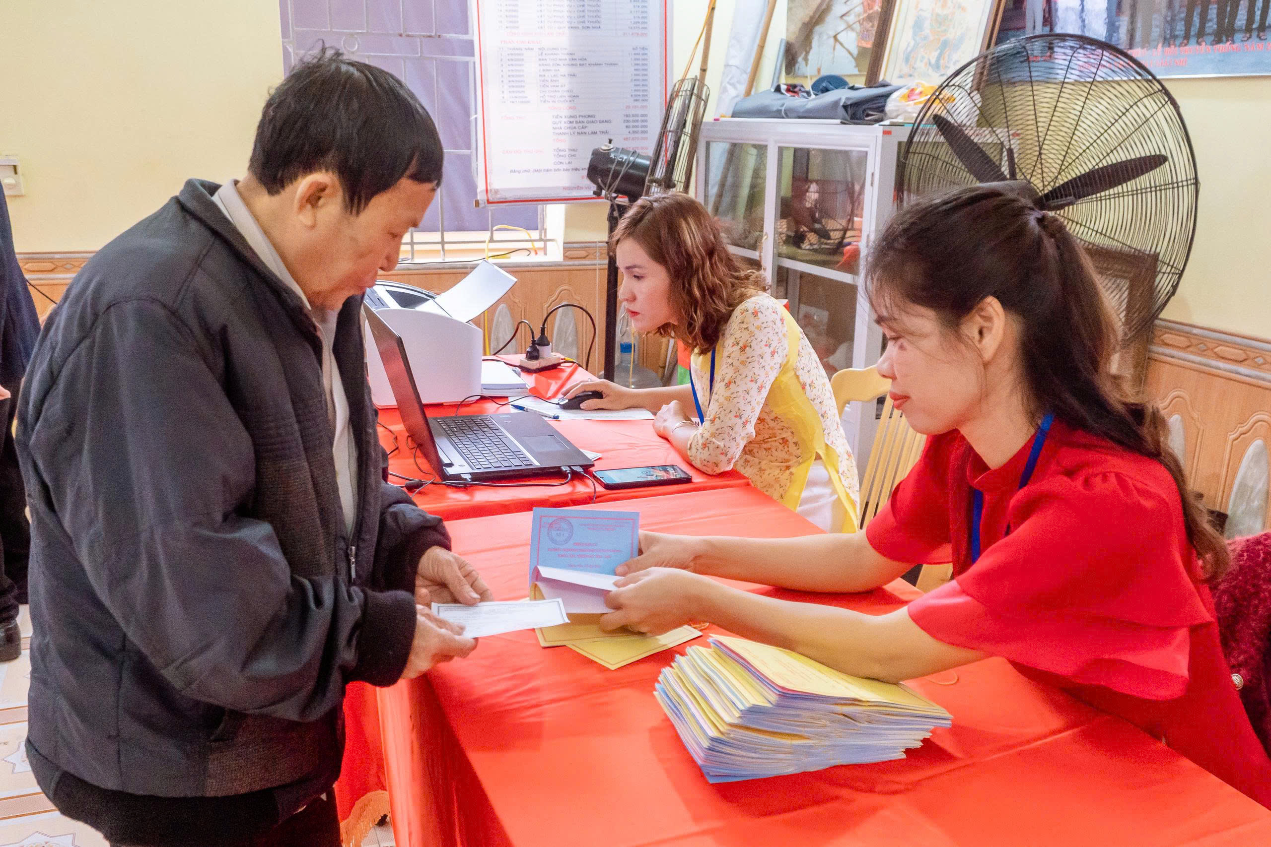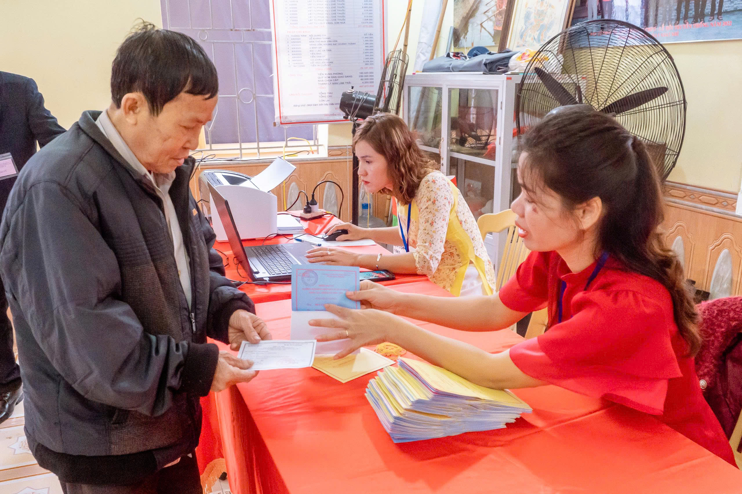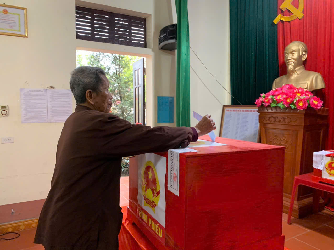 Ngay từ sáng sớm, tại tất cả các khu vực bỏ phiếu được tổ chức tại Nhà văn hóa các thôn xóm, từ các cụ ông, cụ bà cho đến các cử tri trẻ lần đầu tiên đi bỏ phiếu, ai ai cũng nô nức với lá phiếu trên tay đến các điểm bầu cử để thực hiện quyền và nghĩa vụ của mình, bầu ra những người tài đức để đại diện cho ý chí và nguyện vọng của nhân dân. Những cử tri cao tuổi nhất đã vinh dự được là người bỏ những lá phiếu đầu tiên vào hòm phiếu, kỳ vọng lá phiếu của mình sẽ chọn được những đại biểu Quốc hội, đại biểu Hội đồng nhân dân có bản lĩnh, trí tuệ, thực sự gắn bó với nhân dân hơn, gần dân hơn, để đưa đất nước ngày càng phát triển, làm cho đời sống vật chất, tinh thần của nhân dân ngày một nâng cao. Trong dòng cử tri đến bỏ phiếu từ sớm có nhiều cử tri trẻ lần đầu thực hiện quyền công dân đều bày tỏ niềm vinh dự, tự hào xen lẫn háo hức khi lần đầu tiên được tham gia bầu cử nên đã tìm hiểu kỹ thông tin các ứng cử viên, để lựa chọn người xứng đáng và hy vọng những đại biểu được bầu sẽ lắng nghe tiếng nói của người dân, đặc biệt là thế hệ trẻ. Không khí tại các điểm bỏ phiếu vừa nền nếp, trang trọng, vừa rộn ràng bởi dòng cử tri liên tục có mặt. Mỗi người đều thể hiện sự phấn khởi, nghiêm túc và trách nhiệm trong ngày hội lớn của đất nước. Các cử tri đóng dấu đã bỏ phiếu đúng quy trình.