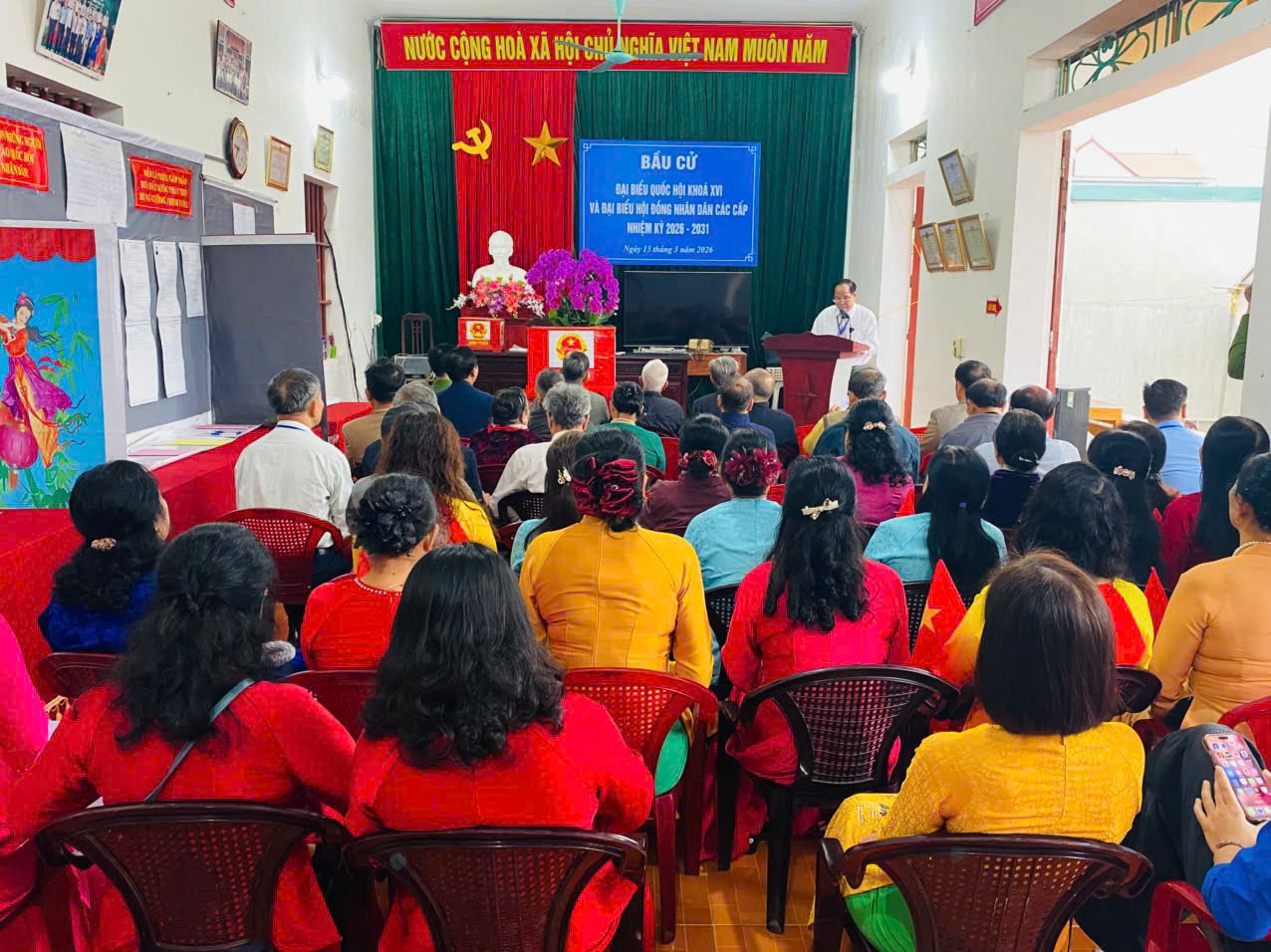 Lễ khai mạc đã được tổ chức trang trọng, đúng quy định. Các Tổ bầu cử đã phổ biến thể lệ Bầu cử, nội quy phòng bỏ phiếu. Các đồng chí lãnh đạo, cùng các vị chức sắc tôn giáo, người có uy tín tại địa phương và toàn thể cử tri cùng có mặt để chứng kiến công tác kiểm tra hòm phiếu, khẳng định tính minh bạch và dân chủ của ngày hội.