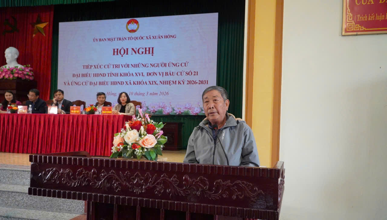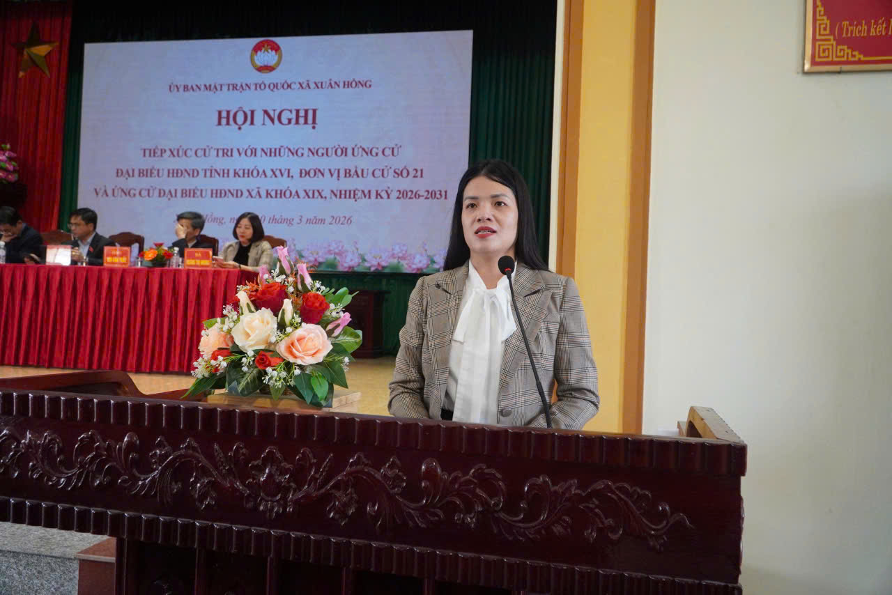 Chiều ngày 10/3, Ban Thường trực Ủy ban Mặt trận Tổ quốc Việt Nam xã Xuân Hồng tổ chức hội nghị tiếp xúc cử tri với những người ứng cử đại biểu Hội đồng nhân dân tỉnh khóa XVI, nhiệm kỳ 2026-2031 tại đơn vị bầu cử số 21, thực hiện quyền vận động bầu cử.