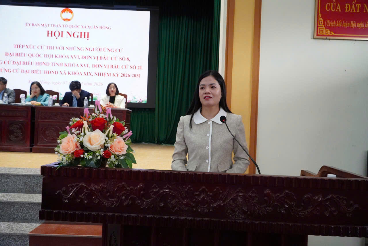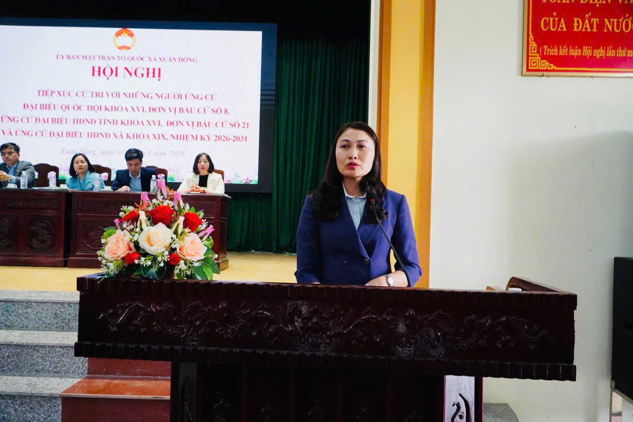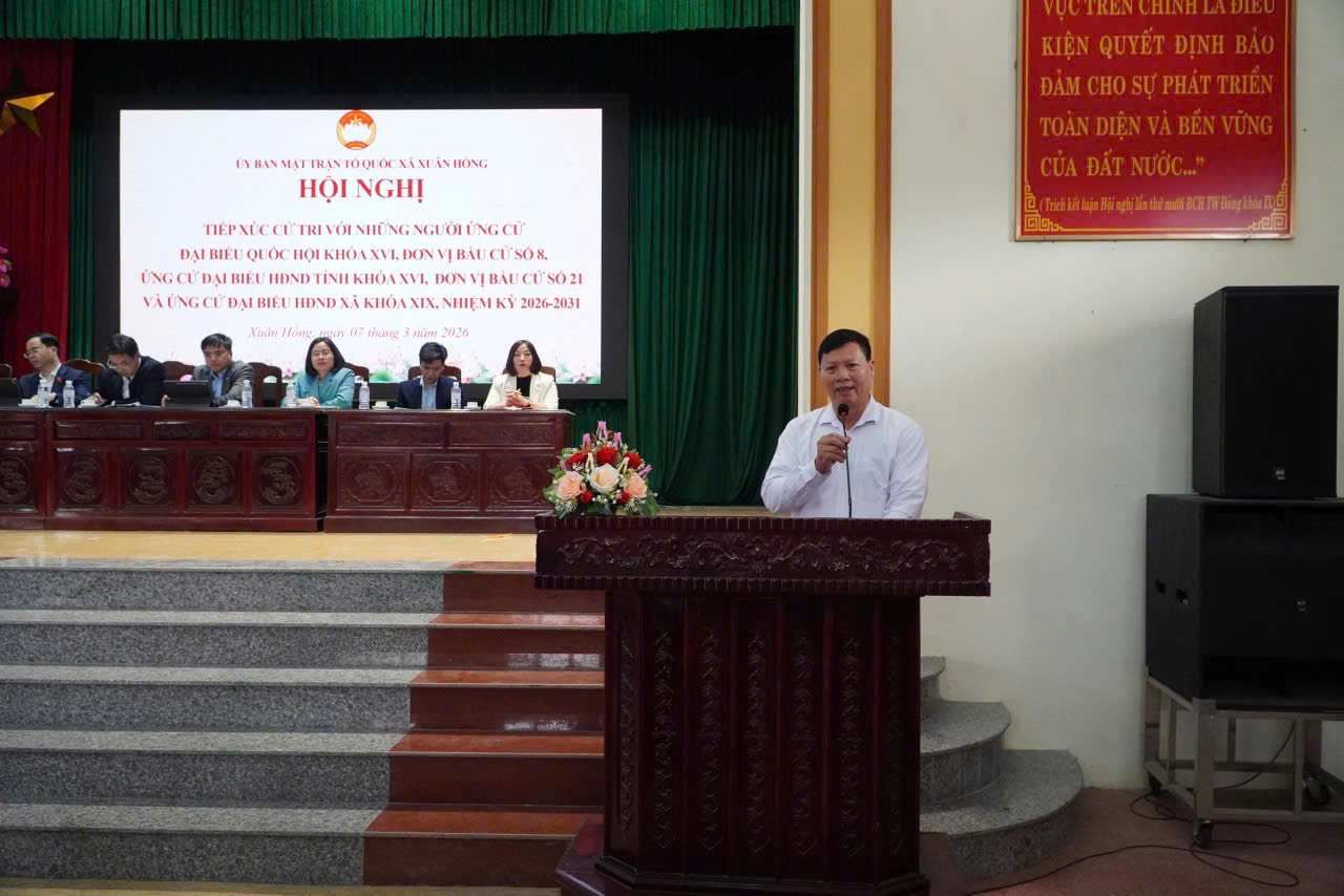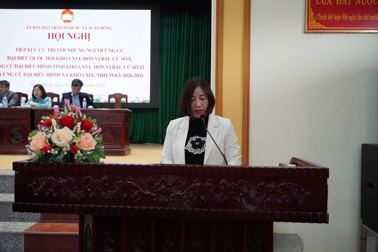 Sáng ngày 7/3, Ban Thường trực Ủy ban Mặt trận Tổ quốc Việt Nam xã Xuân Hồng tổ chức hội nghị tiếp xúc cử tri với những người ứng cử đại biểu Quốc hội khóa XVI, đơn vị bầu cử số 8; những người ứng cử đại biểu Hội đồng nhân dân tỉnh khóa XVI, nhiệm kỳ 2026-2031 đơn vị bầu cử số 21 và những người ứng cử đại biểu Hội đồng nhân dân xã nhiệm kỳ 2026 – 2031.