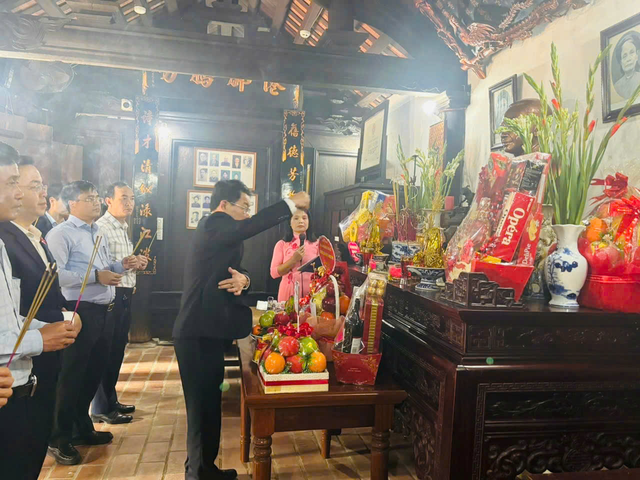 Ngay sau khi kết thúc hội nghị tiếp xúc cử tri, Đoàn đại biểu cùng các ứng cử viên đã đến dâng hương tại Nhà lưu niệm Tổng Bí thư Trường Chinh bày tỏ lòng thành kính và tri ân sâu sắc trước những cống hiến to lớn của cố Tổng Bí thư Trường Chinh – người con ưu tú của quê hương, người học trò xuất sắc của Chủ tịch Hồ Chí Minh, nhà lãnh đạo kiệt xuất của Cách mạng Việt Nam.
